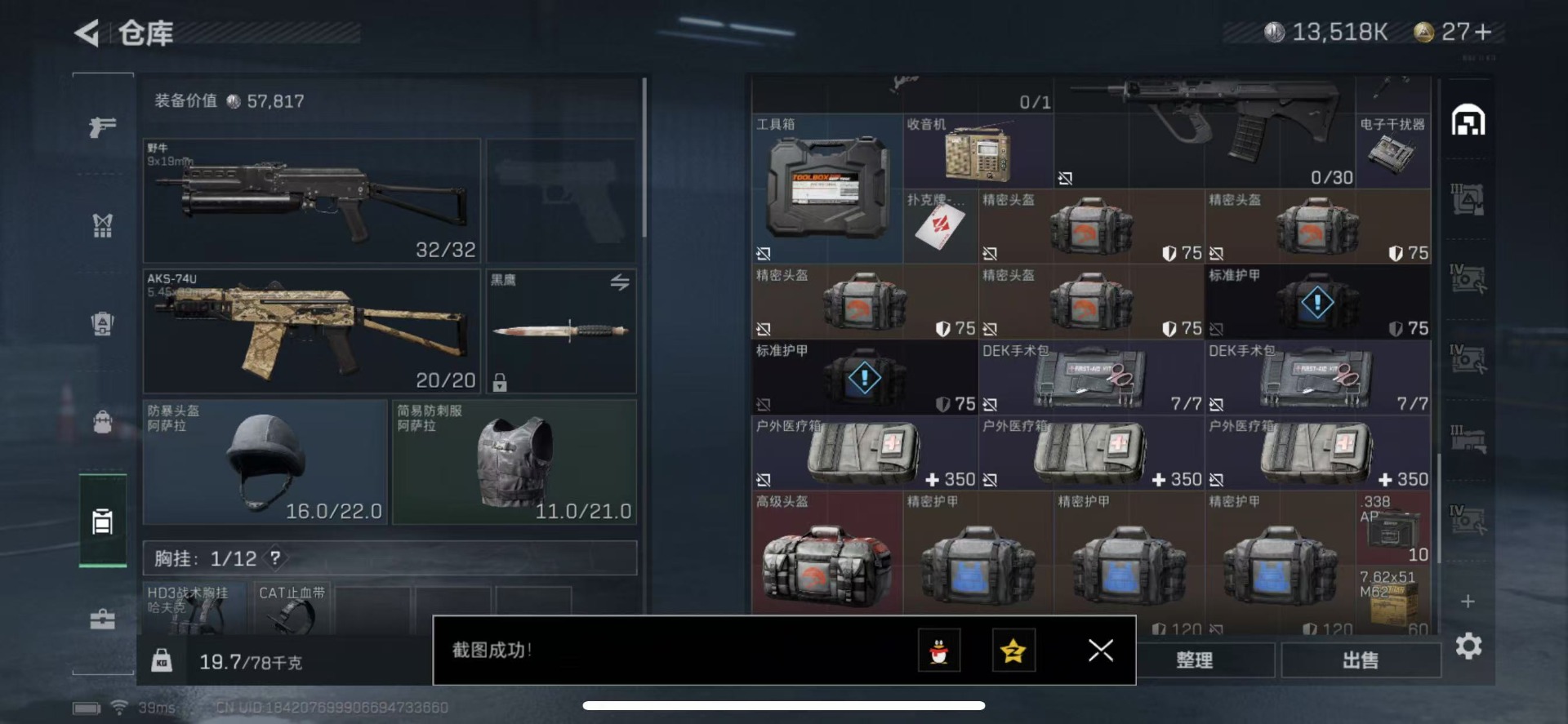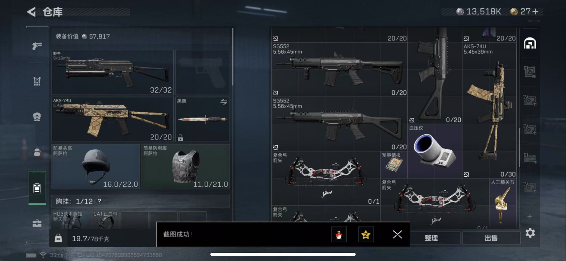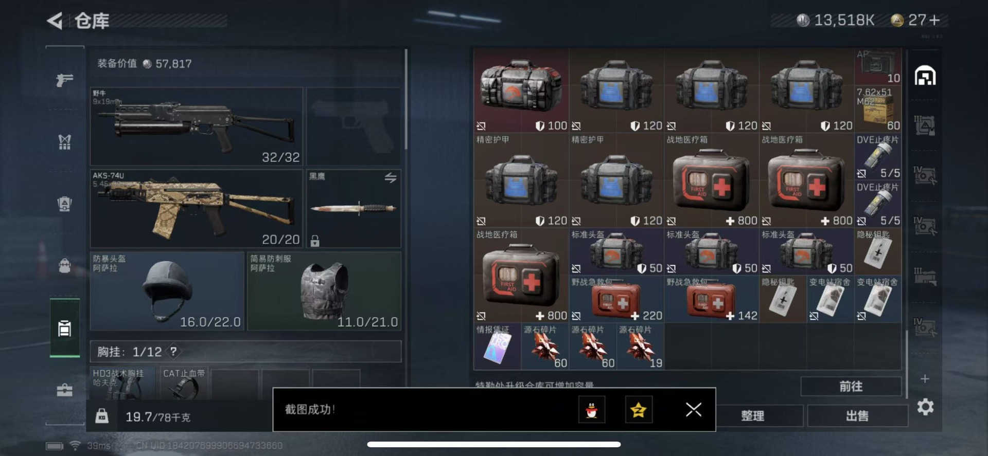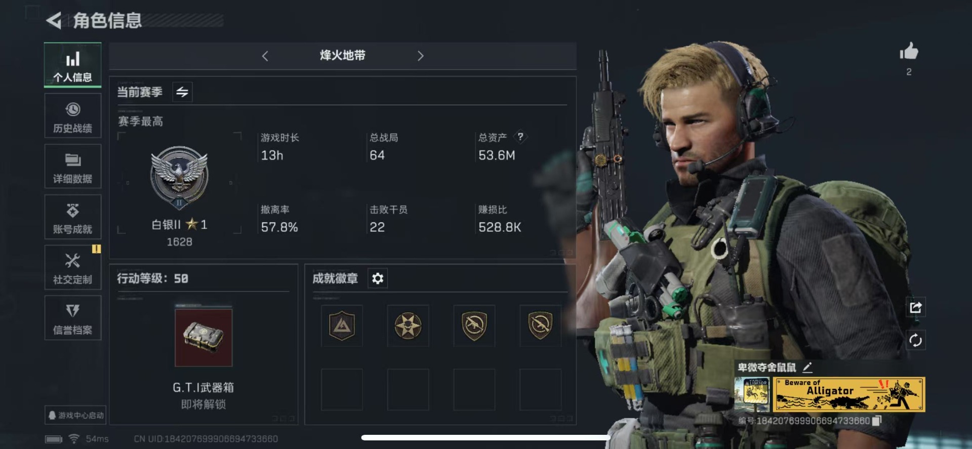 [11296994]可二次 可修改实名 实名:可修改 烽火地带段位:白银 全面战场段位:列兵 高级安全箱(2×3)9.15号到期 总资产:53.6 哈夫币:13.518 传说武器皮肤:SCAR-H战斗步枪-水墨云图,AK-12突击步枪-夜鹰,复合弓-黑-天际线,725双管霰弹枪-送葬人-无题密令,M4A1突击步枪-蚀金玫瑰,CAR-15突击步枪-黑鹰坠落 干员外观:红狼-蚀金玫瑰,骇爪-水墨云图,无名-夜鹰,露娜-黑·天际线