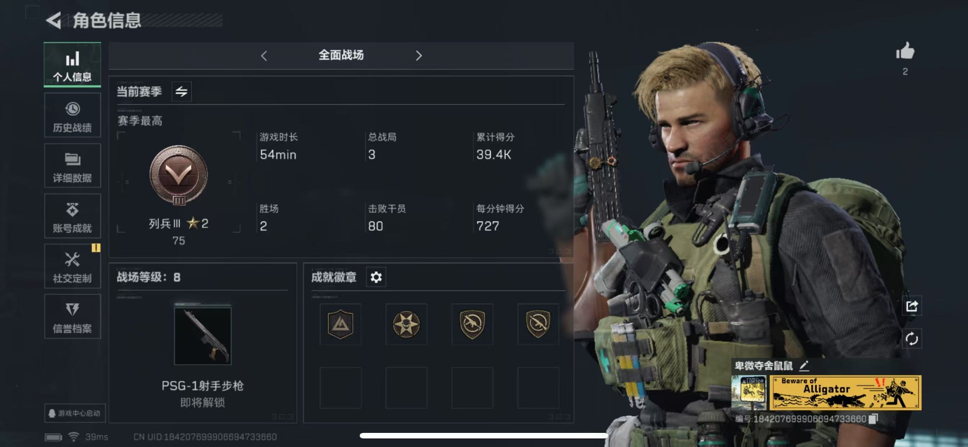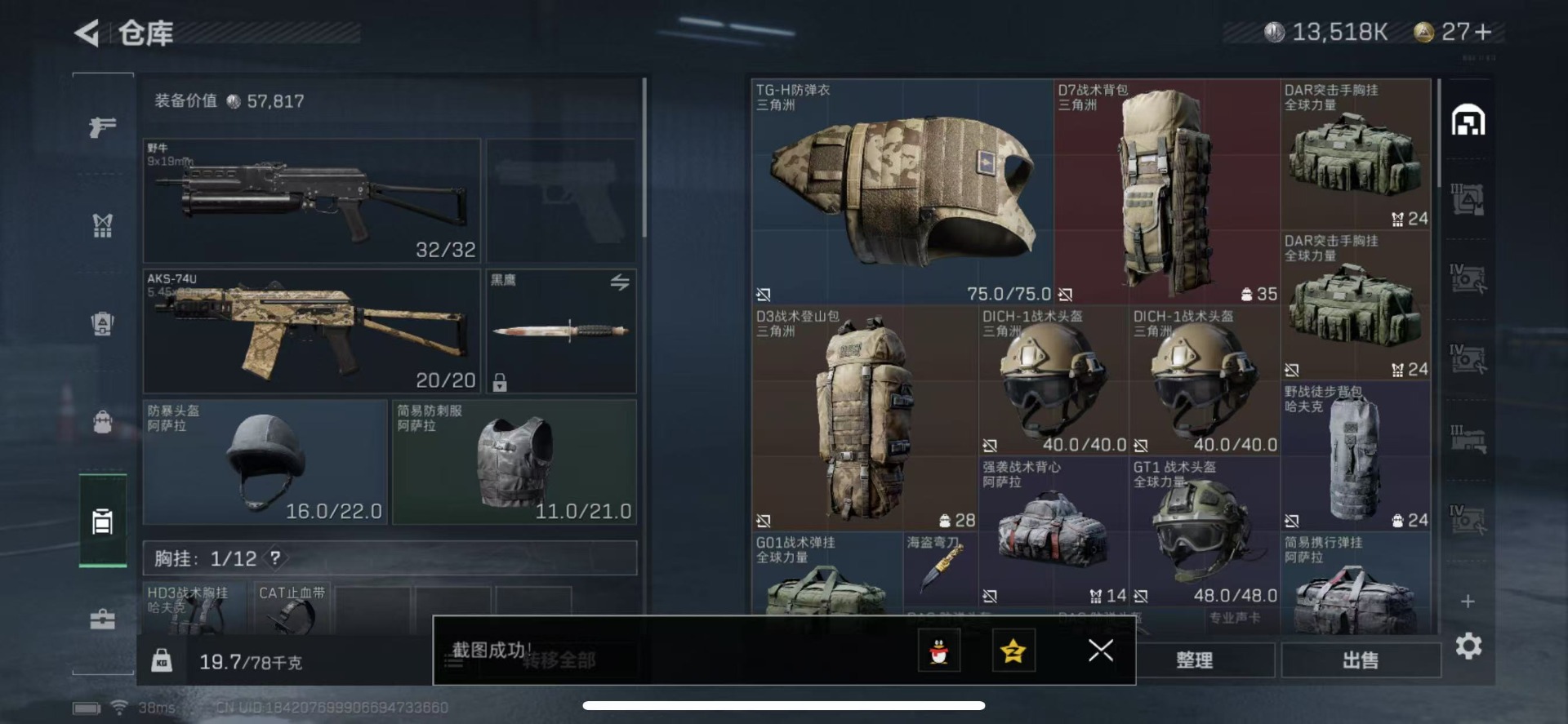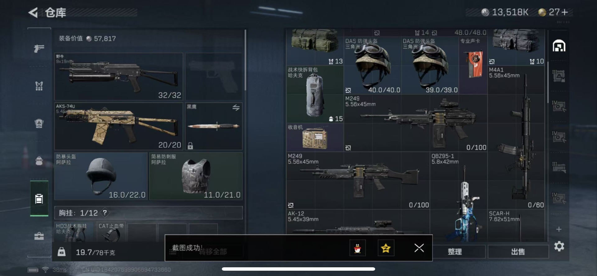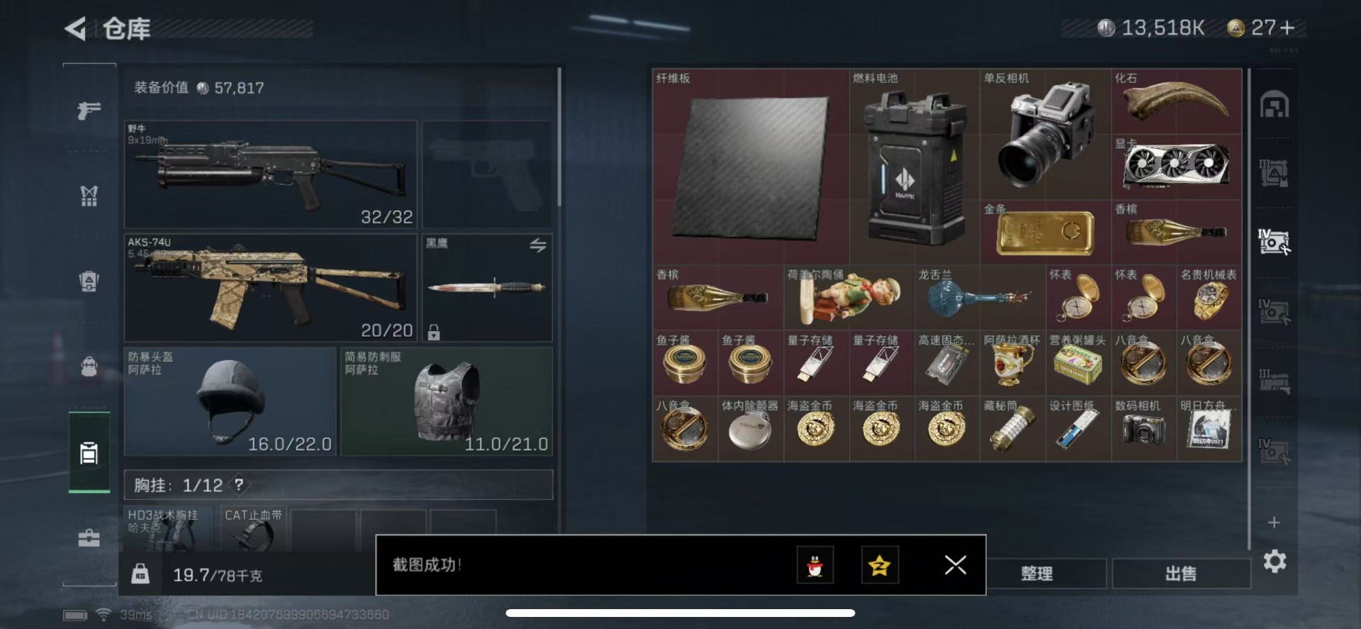 [11296994]可二次 可修改实名 实名:可修改 烽火地带段位:白银 全面战场段位:列兵 高级安全箱(2×3)9.15号到期 总资产:53.6 哈夫币:13.518 传说武器皮肤:SCAR-H战斗步枪-水墨云图,AK-12突击步枪-夜鹰,复合弓-黑-天际线,725双管霰弹枪-送葬人-无题密令,M4A1突击步枪-蚀金玫瑰,CAR-15突击步枪-黑鹰坠落 干员外观:红狼-蚀金玫瑰,骇爪-水墨云图,无名-夜鹰,露娜-黑·天际线