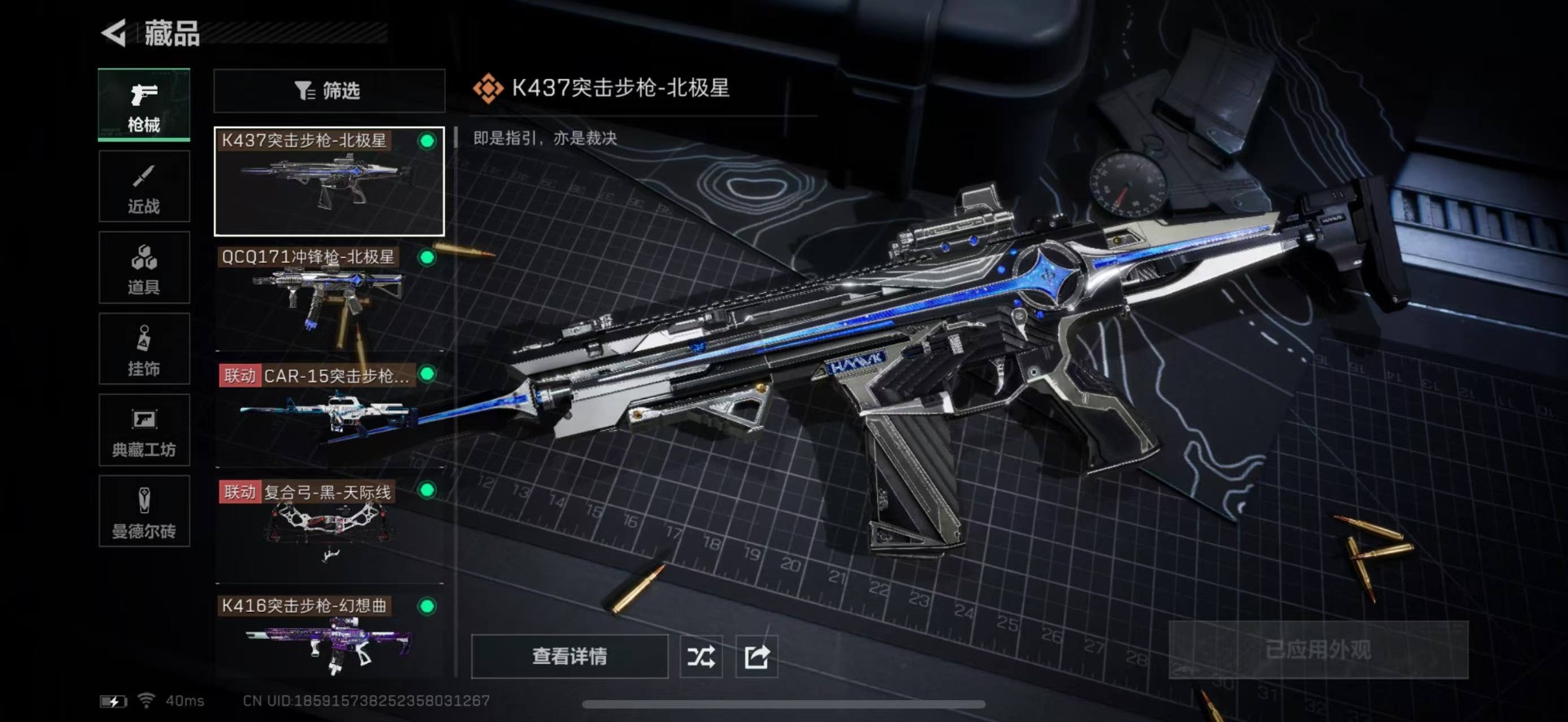 [11252630]总资产:188.3 4干员外观 3近战传说 20传说枪械 顶级安全箱(9.17到期) 可二次 可修改实名 烽火地带段位:黑鹰 全面战场段位:列兵 哈夫币:417.176 传说武器皮肤:近战-影锋,近战-黑海,近战-北极星,SR-25射手步枪-水墨云图,AK-12突击步枪-夜鹰,SMG45冲锋枪-骑士,QJB201轻机枪-黑海,MP5冲锋枪-黑海,G3战斗步枪-幻想曲,复合弓-黑-天际线,CAR-15突击步枪-阿米娅,QCQ171冲锋枪-北极星,K437突击步枪-北极星,K416突击步枪-幻想曲,M250通用机枪-游乐场,M870霰弹枪-游乐场,AUG突击步枪-游乐场,M7战斗步枪-维京,M4A1突击步枪-蚀金玫瑰,P90冲锋枪-神秘艺术 史诗武器皮肤:QBZ95-1突击步枪-ACE,AUG突击步枪-特勤执行,M700狙击步枪-蝮蛇,PKM通用机枪-蝮蛇,AS Val突击步枪-尖端治疗,M700狙击步枪-守夜人,Ash-12战斗步枪-守夜人,MP5冲锋枪-深海恐惧,勇士冲锋枪-深海恐惧,SG552突击步枪-深海恐惧,AKM突击步枪-林中猎手,SVD狙击步枪-暗夜猎手,M16A4突击步枪-竞赛选手,M1014霰弹枪-林中猎手,SV-98狙击步枪-林中猎手,PTR-32突击步枪-英雄,M250通用机枪-囚徒,SCAR-H战斗步枪-囚徒,UZI冲锋枪-危险实验,M249轻机枪-维京,SCAR-H战斗步枪-危险实验,沙漠之鹰-曙光,K416突击步枪-竞技风,Vector冲锋枪-阿萨拉文明,M700狙击步枪-竞技风,93R-博士 干员外观:红狼-蚀金玫瑰,牧羊人-街头之王,无名-夜鹰,露娜-黑·天际线