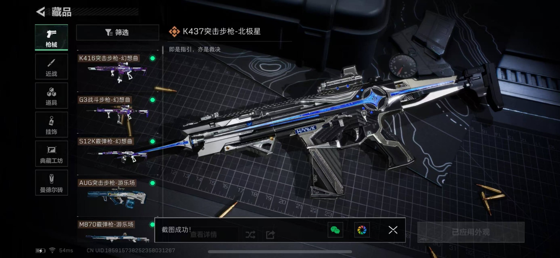 - [12085688]总资产:80.1M 7传说枪械 哈夫币:25.578K 进阶安全箱(9.15到期) 可二次 可修改实名 烽火地带段位:铂金 全面战场段位:尉官 传说武器皮肤:UZI冲锋枪-特斯拉线圈,M16A4突击步枪-狩猎时刻,AK-12突击步枪-特斯拉线圈,SR-3M紧凑突击步枪-特斯拉线圈,Vector冲锋枪-狩猎时刻,G3战斗步枪-狩猎时刻,CAR-15突击步枪-阿米娅