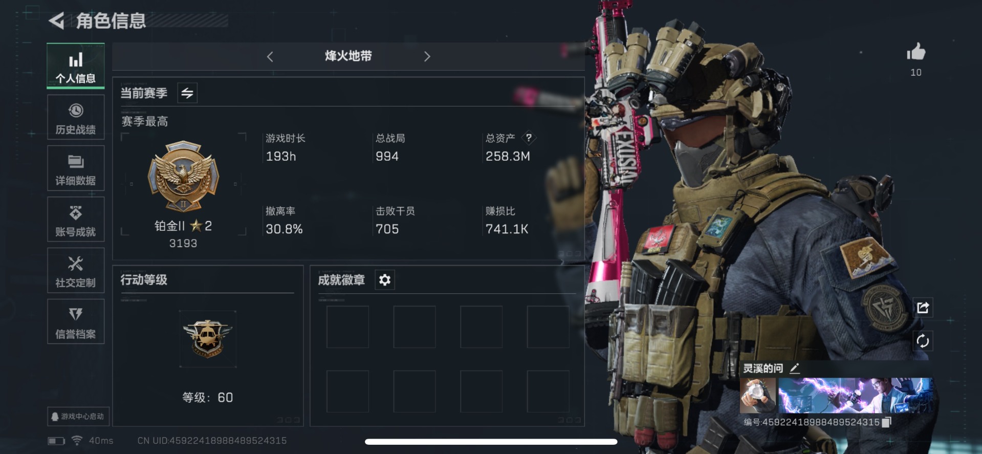 [11284510]总资产:258.3M 2干员外观 5传说枪械 哈夫币:6.825K 顶级安全箱(3×3)9.15号到期 可二次 可修改实名 优质装备:顶级安全箱(3x3) 烽火地带段位:铂金 全面战场段位:校官 传说武器皮肤:M4A1突击步枪-阿米娅,AWM狙击步枪-捞点薯条,腾龙突击步枪-捞点薯条,93R-捞点薯条,勇士冲锋枪-能天使-午夜邮差 干员外观:蜂医-送葬人·无题密令(S5),露娜-黑·天际线