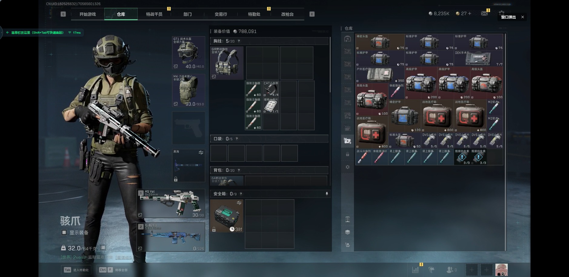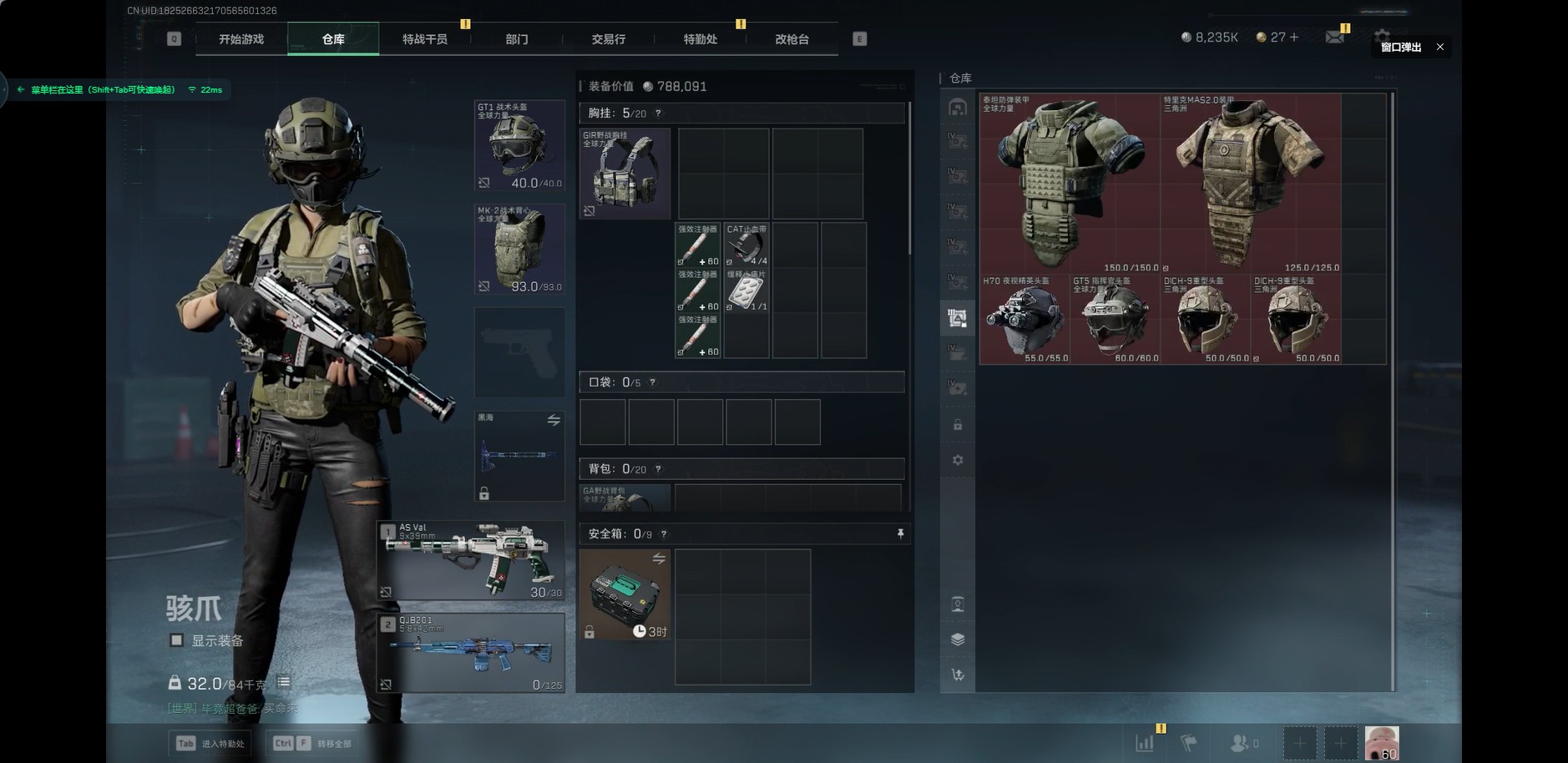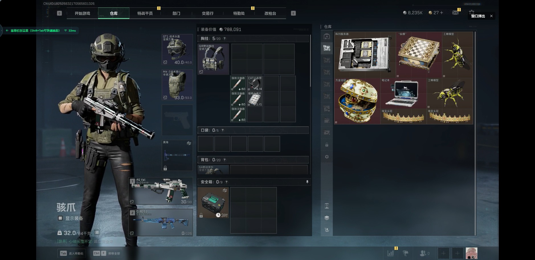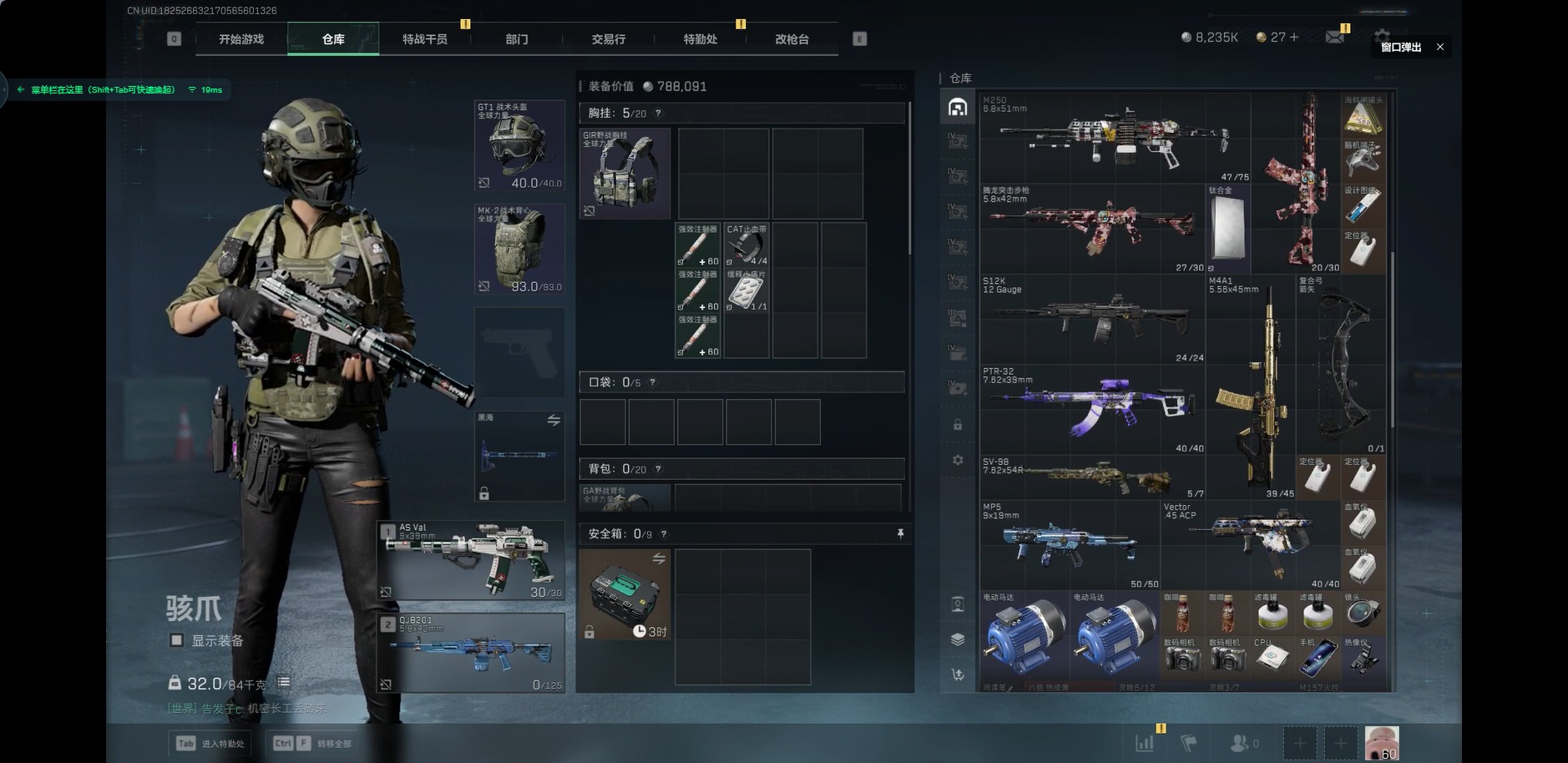 [11296000]可二次 可修改实名 实名:可修改 高级安全箱(9.16到期) 总资产:229 哈夫币:8.235 传说武器皮肤:近战-黑海,SCAR-H战斗步枪-水墨云图,MP5冲锋枪-黑海,QJB201轻机枪-黑海,AK-12突击步枪-夜鹰,SMG45冲锋枪-骑士,M4A1突击步枪-蚀金玫瑰 史诗武器皮肤:M700狙击步枪-守夜人,SG552突击步枪-尖端治疗,Ash-12战斗步枪-守夜人,SR-25射手步枪-尖端治疗,勇士冲锋枪-深海恐惧,SG552突击步枪-深海恐惧,AKM突击步枪-林中猎手,SVD狙击步枪-暗夜猎手,PSG-1射手步枪-无垢,AS Val突击步枪-尖端治疗,PKM通用机枪-守夜人,M1014霰弹枪-林中猎手,SV-98狙击步枪-林中猎手,PTR-32突击步枪-英雄,M250通用机枪-囚徒,沙漠之鹰-曙光 干员外观:红狼-蚀金玫瑰,骇爪-水墨云图