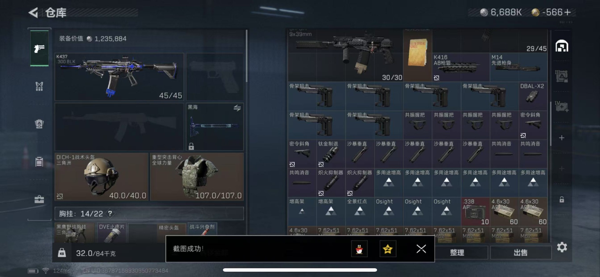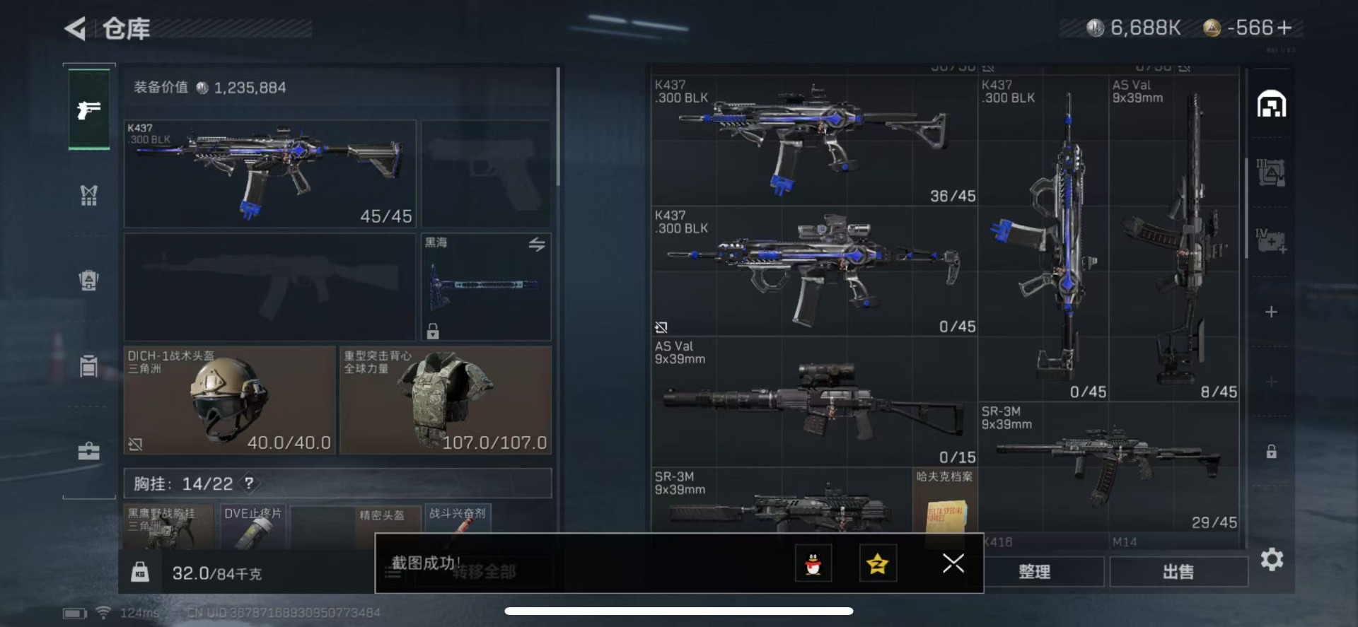 [10840421]可二次 高级安全箱(2×3)9.1号到期 总资产(M):63.9 哈夫币:6.688 传说武器皮肤:近战-黑海,K416突击步枪-命运(典藏),QJB201轻机枪-黑海,MP5冲锋枪-黑海,AK-12突击步枪-夜鹰,CAR-15突击步枪-黑鹰坠落,M4A1突击步枪-阿瑞斯之怒,M4A1突击步枪-蚀金玫瑰 干员外观:红狼-蚀金玫瑰,无名-夜鹰