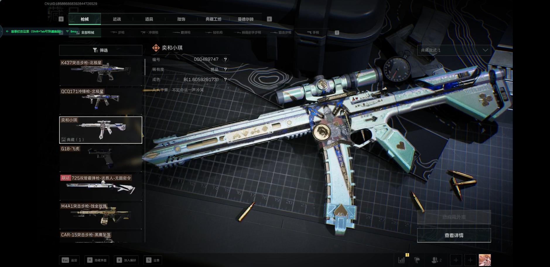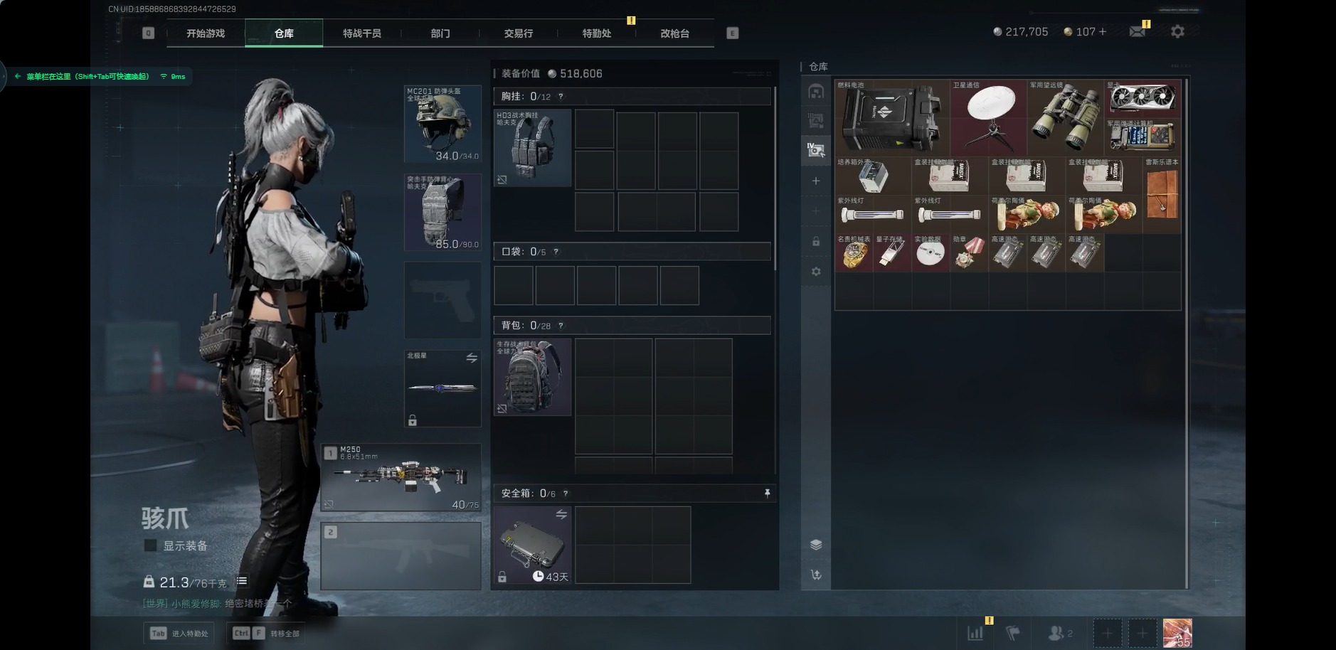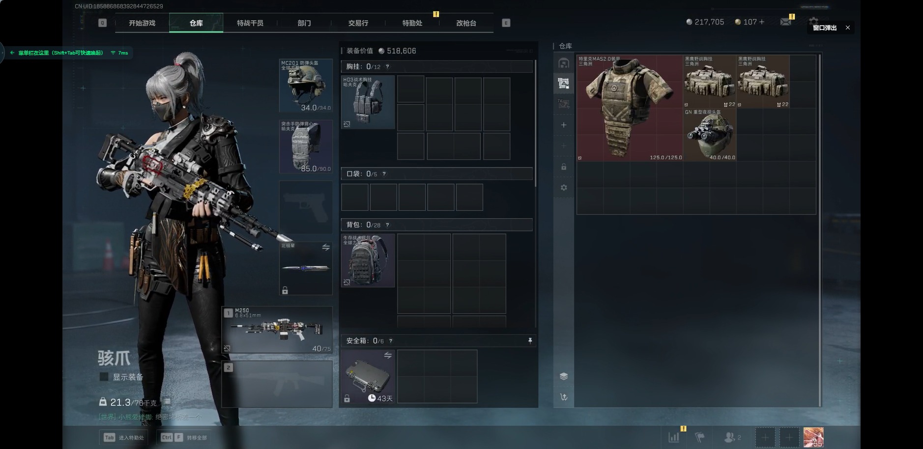 [11238706]可二次 可修改实名 实名:可修改 高级安全箱(2×3)9.15号到期 烽火地带段位:铂金 全面战场段位:上等兵 总资产:23.2 哈夫币:217.705 传说武器皮肤:近战-北极星,K416突击步枪-命运(典藏),SCAR-H战斗步枪-水墨云图,AK-12突击步枪-夜鹰,725双管霰弹枪-送葬人-无题密令,QCQ171冲锋枪-北极星,K437突击步枪-北极星,G18-飞虎,M4A1突击步枪-蚀金玫瑰,CAR-15突击步枪-黑鹰坠落 史诗武器皮肤:SR-25射手步枪-尖端治疗,AS Val突击步枪-尖端治疗,M700狙击步枪-守夜人,SG552突击步枪-尖端治疗,Ash-12战斗步枪-守夜人,MP5冲锋枪-深海恐惧,SG552突击步枪-深海恐惧,AKM突击步枪-林中猎手,.357左轮-幸运时刻,M16A4突击步枪-竞赛选手,PKM通用机枪-守夜人,M1014霰弹枪-林中猎手,SV-98狙击步枪-林中猎手,PTR-32突击步枪-英雄,PSG-1射手步枪-无垢,M250通用机枪-囚徒,M14射手步枪-黑鹰坠落 干员外观:红狼-蚀金玫瑰,骇爪-水墨云图,威龙-飞虎