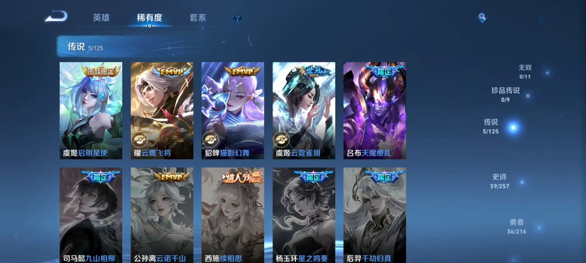 - [11853872]V6 1典藏 2传说 125英雄 259皮肤 可修改实名 荣耀水晶:神鉴启示录 传说皮:久胜战神 珍宝阁皮:万物之道,优雅恋人,玩趣恶龙 限定皮:逐霄战戟,鸣野蒿,高山流水,五谷丰年,梁祝,李小龙,山海·玄木吟(马可年限) 史诗皮:星界战将,茶境仙,鸭鸭历险记-刘禅,龙之律动,石田雨龙,百相守梦-百里守约,战舞者,蒙犽顽岩魄,蔬乡物语(鲁班七号),化蝶舞,破空之剑,紫霞仙子,特工魅影,千年之狐,江河有灵,高渐离燃音魔法,雪夜绮愿(周瑜),百解令(蒙犽),蒙恬荣光圣徽,冰冠公主,青蛇,偶像歌手,无限星赏官,魅语,白蛇,电玩·爆裂旋风,龙骑士(小龙虾),猫狗日记-孙策,猫狗日记-大乔,节奏热浪,女仆咖啡,摇滚巨星,水果甜心,天才门将,星夜王子,心灵骇客,功夫厨神,德古拉伯爵,暗隐猎兽者,幽灵船长,鬼剑武藏,心灵战警,乐园奇幻夜,天秀·启明,舞动绿茵,地狱岩魂,纤云弄巧,拒霜思,缤纷独角兽,乘风破浪,逐浪之夏,水晶猎龙者,曙光守护者,金属风暴,原初追逐者,圣诞狂欢,圣诞恋歌,鹰眼统帅,暗夜贵公子,魅力维加斯,黎明之约,天秀·音浪,无心,未来纪元-赵云