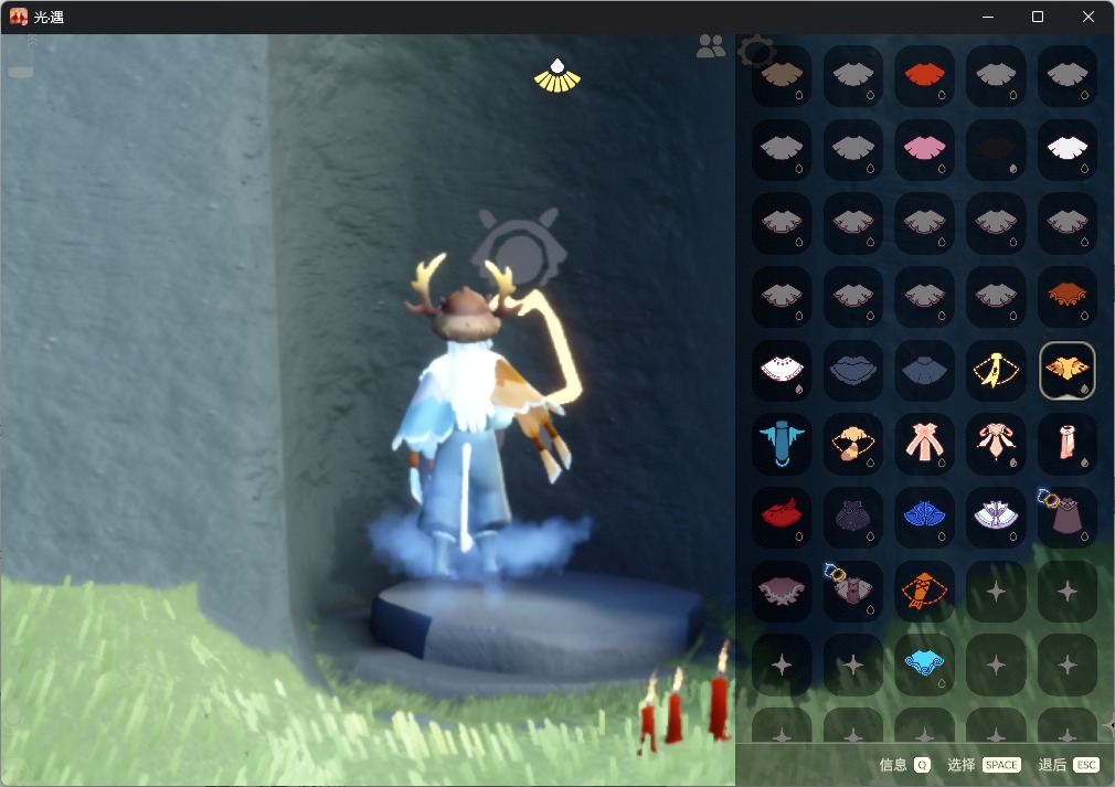 - [12200897]【毕业季】九色鹿,青鸟季 【蜡烛】63 【爱心】61 【稀有礼包】圣诞雪人,神鹿祝福礼包,圣诞鹿角,海蓝波浪发型,雪花发夹,四叶草头饰,小王子围巾,欧若拉之翼,白雪斗篷,绊爱礼包,欧若拉之声,姆明饰品套装,渐变双马尾发饰礼包,大橘大利,粽子发饰,青衫落拓礼包 【毕业物品】九色鹿飞天斗篷,九色鹿丝带裤,九色鹿丸子头,青鸟斗篷,青鸟面饰 【热门复刻】绿芽,海洋斗,武士裤,虚荣,正太头,猫猫头,花环长发,红耳机,箬笠,平顶帽,雨伞,白金斗篷,红金斗篷