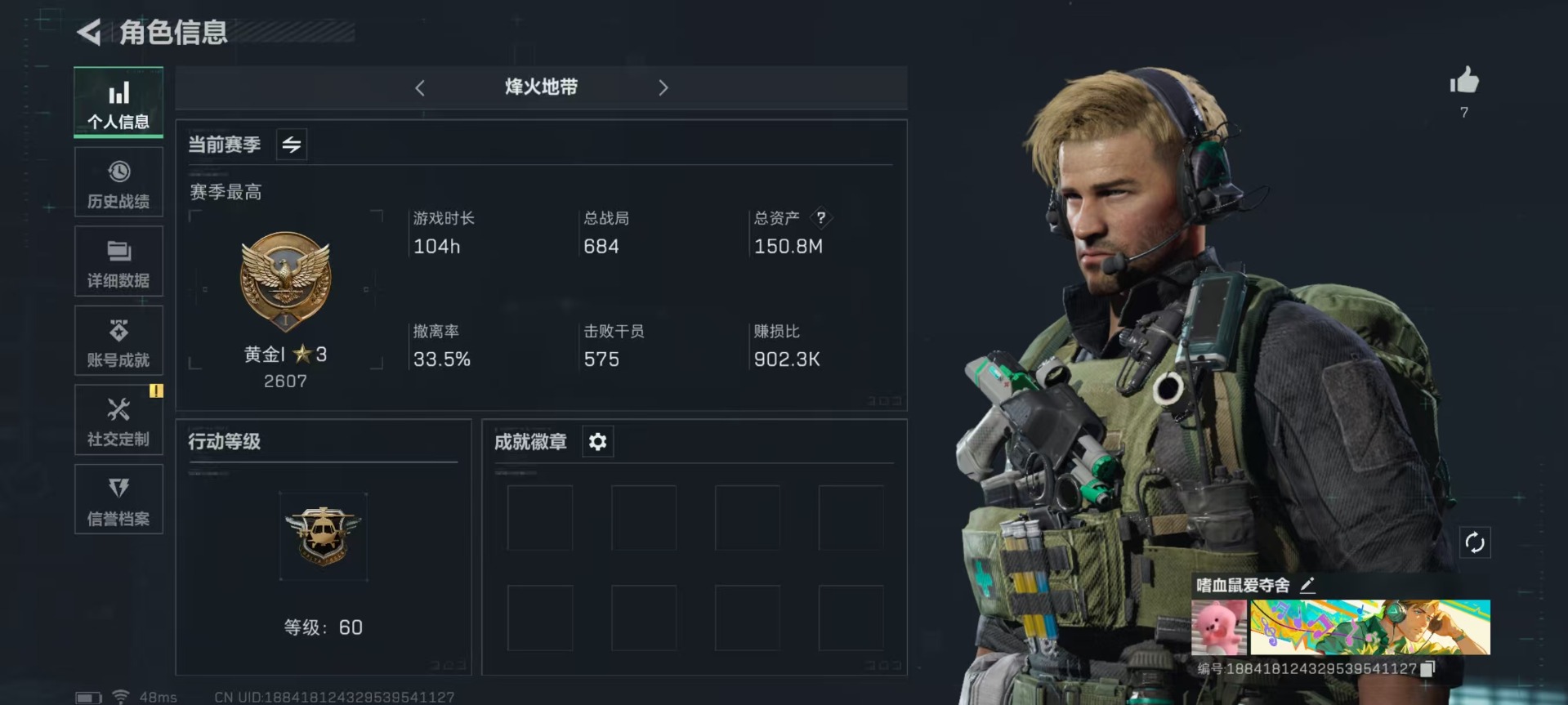 [11490526]总资产:150.8M 10传说枪械 哈夫币:21.372K 高级安全箱(9.17到期) 可二次 可修改实名 烽火地带段位:黄金 全面战场段位:无段位 传说武器皮肤:UZI冲锋枪-特斯拉线圈,M16A4突击步枪-狩猎时刻,AK-12突击步枪-特斯拉线圈,SR-3M紧凑突击步枪-特斯拉线圈,勇士冲锋枪-能天使-午夜邮差,Vector冲锋枪-狩猎时刻,G3战斗步枪-狩猎时刻,725双管霰弹枪-送葬人-无题密令,M4A1突击步枪-阿米娅,CAR-15突击步枪-阿米娅 史诗武器皮肤:勇士冲锋枪-深海恐惧,SG552突击步枪-深海恐惧,PKM通用机枪-荒野求生,M250通用机枪-囚徒,腾龙突击步枪-无垢,MP7冲锋枪-无垢,SR-3M紧凑突击步枪-荒野求生,QBZ95-1突击步枪-曙光,S12K霰弹枪-曙光