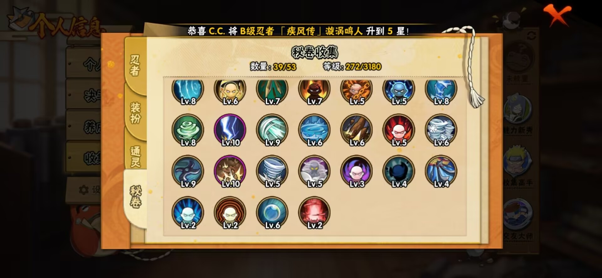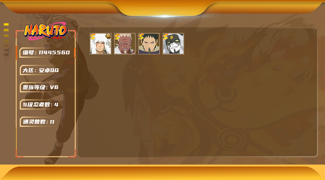 [11445560]V6 4S忍 9A忍 11通灵 280.6W战力 可二次 可修改实名 优质装备:宇智波带土 「忍界大战」,大筒木桃式,艾「忍界大战」 S级忍者:自来也 「舞之豪杰」