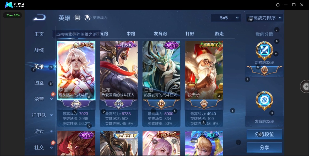 - PX_2095048-实名: 可修改 贵族等级: V5 英雄数: 63 皮肤数: 43 传说皮: 典韦战鼓燎原