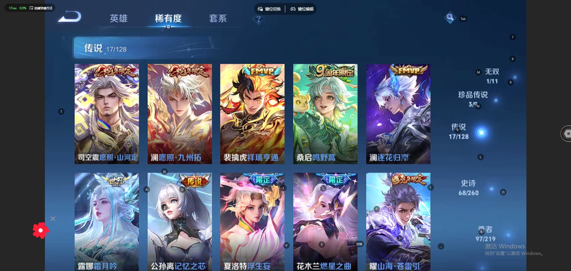 - PX_2083126-16 安卓QQ/永恒钻石/279皮肤/123英雄/1典藏/0珍品无双/0无双/3珍品传说/22传说/78史诗/8稀有英雄 【3 珍品传说】怪盗基德 马可波罗,时之奇旅 孙策,江户川柯南 鲁班七号, 【1 典藏皮肤】弑枪猎影 韩信, 【22 传说皮肤】启明星使 虞姬,逐花归海 澜,无双飞将 马超,白虎志 百里玄策,云鹰飞将 曜,齐天大圣 孙悟空,神器·狴犴令 狄仁杰,深海之息