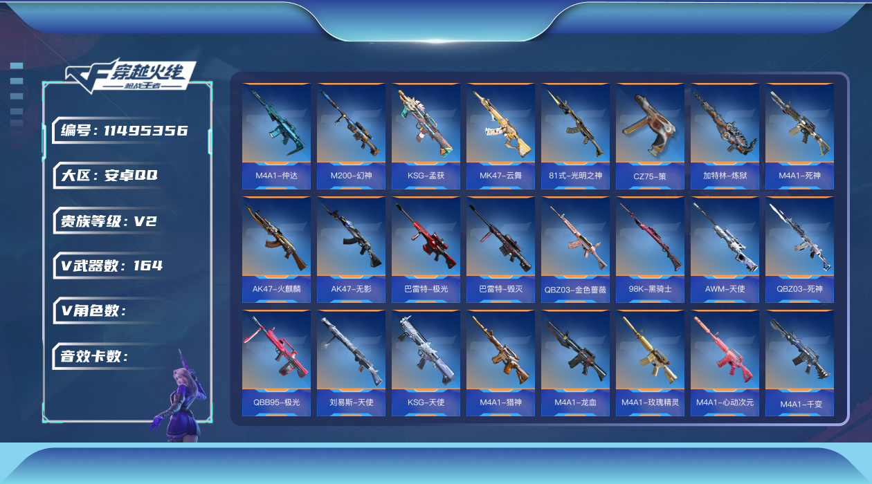 - PX_2093264-VIP8/166V/30王者/烈至尊/翼至尊/神至尊/心至尊/王者之翼/王者之击/王者之轮/王者之心/王者之锋/王者之魂/王者之啸/王者之烈/M4A1-游骑兵/AWM-妙才/蝴蝶/零-水下丽影/AK47-波塞冬/M4A1-游骑兵/AWM-妙才/QBB95-极光/王者之烈
