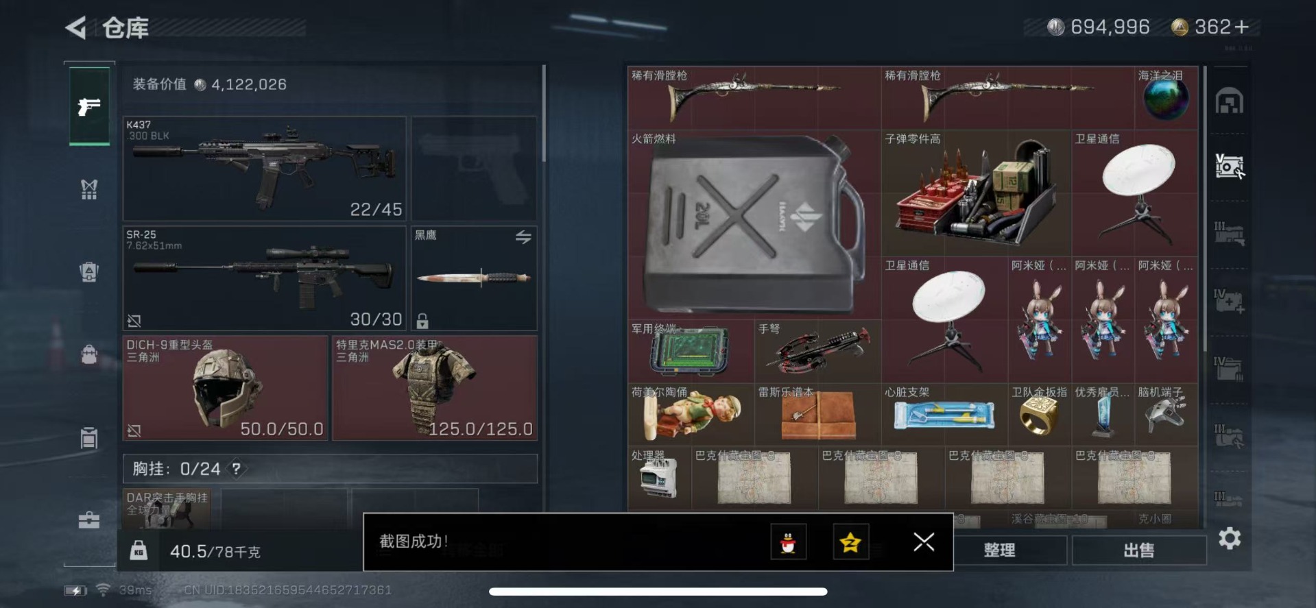 - [11526578]总资产:209M 2干员外观 2近战传说 20传说枪械 哈夫币:13.932K 高级安全箱(2×3)9.15号到期 可二次 可修改实名 优质装备:近战-黑海,近战-北极星 烽火地带段位:钻石 全面战场段位:军士长 传说武器皮肤:SCAR-H战斗步枪-水墨云图,AK-12突击步枪-夜鹰,SMG45冲锋枪-骑士,93R-捞点薯条,PSG-1射手步枪-黑-天际线,AWM狙击步枪-捞点薯条,腾龙突击步枪-捞点薯条,AK-12突击步枪-特斯拉线圈,SR-3M紧凑突击步枪-特斯拉线圈,UZI冲锋枪-特斯拉线圈,Vector冲锋枪-能天使-午夜邮差,复合弓-黑-天际线,725双管霰弹枪-送葬人-无题密令,K437突击步枪-北极星,QCQ171冲锋枪-北极星,MP5冲锋枪-黑海,M4A1突击步枪-蚀金玫瑰,QJB201轻机枪-黑海 史诗武器皮肤:AK-12突击步枪-原型机(典藏),MP7冲锋枪-原型机(典藏),M700狙击步枪-蝮蛇,PKM通用机枪-蝮蛇,Ash-12战斗步枪-守夜人,M16A4突击步枪-竞赛选手,PKM通用机枪-守夜人,AS Val突击步枪-尖端治疗,M700狙击步枪-守夜人,SG552突击步枪-尖端治疗,SR-25射手步枪-尖端治疗,PKM通用机枪-荒野求生,SG552突击步枪-深海恐惧,AKM突击步枪-林中猎手,MP5冲锋枪-青枳,G3战斗步枪-锡兰,SR-3M紧凑突击步枪-荒野求生,M1014霰弹枪-林中猎手,SV-98狙击步枪-林中猎手,PTR-32突击步枪-英雄,SVD狙击步枪-荒野求生,M250通用机枪-囚徒,SV-98狙击步枪-囚徒,SCAR-H战斗步枪-囚徒,腾龙突击步枪-无垢,MP7冲锋枪-无垢,PSG-1射手步枪-无垢,沙漠之鹰-曙光,SVD狙击步枪-阿萨拉工艺,S12K霰弹枪-曙光 干员外观:红狼-蚀金玫瑰,骇爪-水墨云图