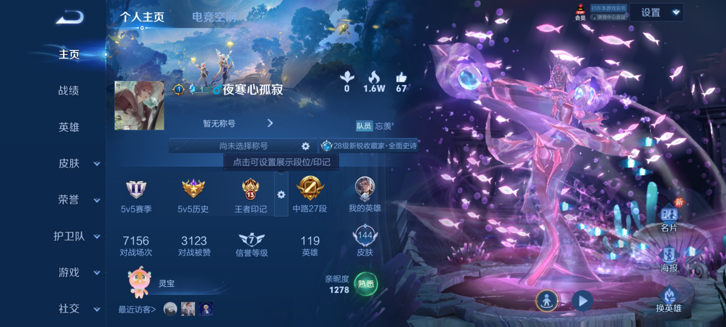 - PX_2108217-实名: 可修改 贵族等级: V7 英雄数: 124 皮肤数: 146 荣耀水晶: 武则天 星传说: 幻海之心,未来机甲 传说皮: 黄金射手座,云霓雀翎 限定皮: 李小龙,游园惊梦,时雨天司,魔法小厨娘,飞衡,大圣娶亲,高山流水