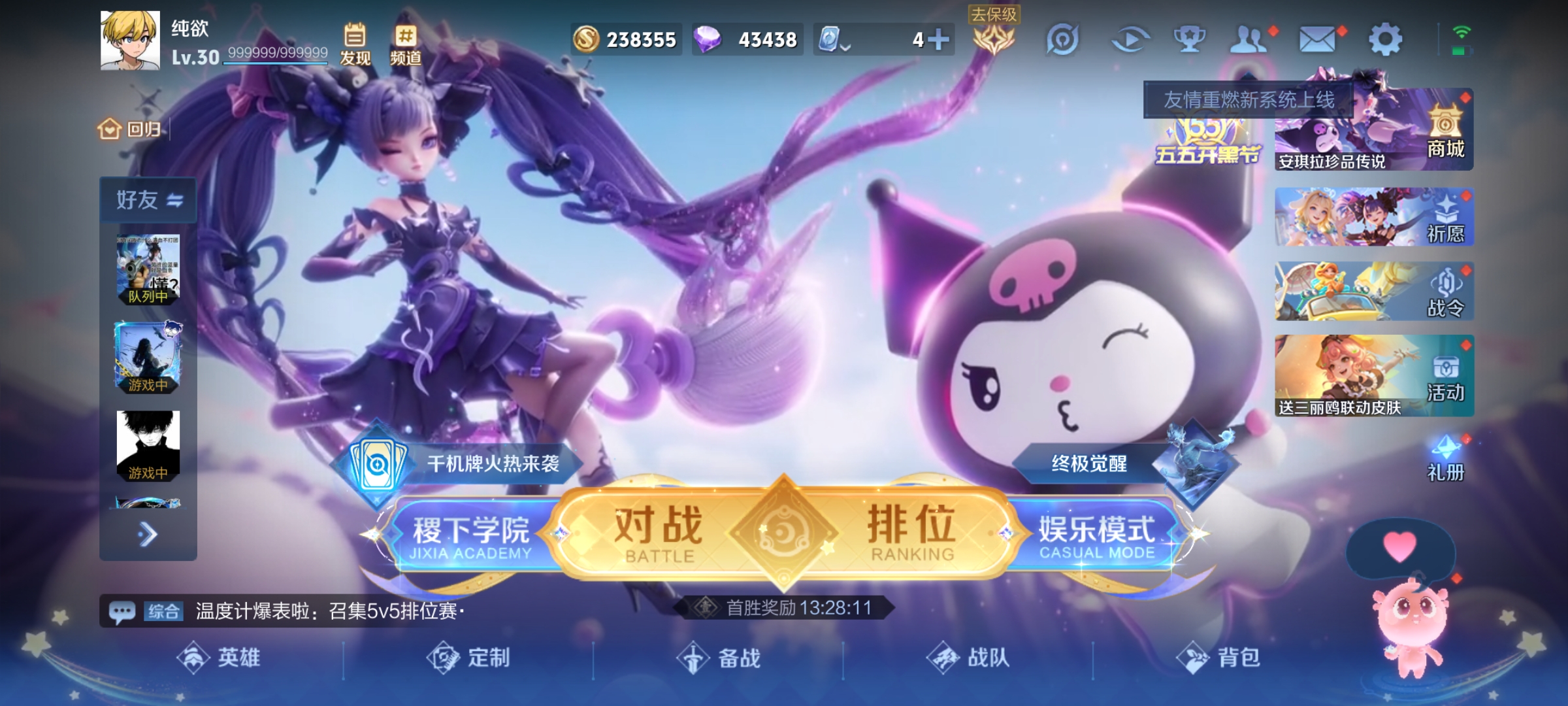 - [11599791]V10 3典藏 5无双 8珍品传说 65传说 125英雄 448皮肤 可修改实名 优质装备:星域神启(倪克斯贼亮),九霄神辉(木兰典藏),青丘·九尾(妲己无双),小乔时之魔女(小乔无双),雪境奇遇-甄姬,器灵·螭龙剑,最初的交响(伽罗典藏),天机白泽,江户川柯南,怪盗基德,器灵·落星盏,酷洛米之心,大耳狗之梦,黑崎一护,黄金狮子座,黄金射手座,云鹰飞将(小将军),绛天战甲(鸡嘴战神),黄金白羊座,猫影幻舞,久胜战神,炽阳神光,一念神魔,云霓雀翎,仲夏夜之梦(大飞蛾),零号·赤焰,地狱之眼,音你心动-周瑜,胖达荣荣,乞巧织情,时之恋人-刘备(电焊工),游龙清影(小青龙),淬星耀世,超时空战士-狄仁杰,末日机甲-孙策,花朝如约(花篮子),音你闪耀(rap皮),天秀幻梦,山海·炽霜斩(李信年限),炽翼辉光(娃娃菜牛角包),画中仙,浮生妄,记忆之芯(机甲兔),青丘·九尾,百相守梦(张飞),电玩·雷克斯,鹤羽星尊,灼幽烈阳,妄想奇谈,惊梅引,小动物乐团,霜月吟,澜逐花归海,艾琳觅芳踪,牧神诗旅,玄雷天君,千劫归真 珍品传说:时之奇旅-孙策,兔狲·蓬尾 传说皮:典韦战鼓燎原,死亡执政官,九山相柳,云诺千山,续相思,星之鸣奏,祥瑞亨通,幻光神枪 珍宝阁皮:万物之道,蔷薇恋人 限定皮:愿照·九州拓(澜年限),愿照·福禄聚(蔡文姬年限),愿照·岁时盈(虞姬年限),愿照·山河定(司空震年限),愿照·众生和(妲己年限),愿照·千秋盛(女娲年限),逐霄战戟,鸣野蒿,至尊宝,凤求凰(白切鸡),凤凰于飞,异界灵契(白毛香),傲雪梅枪,寅虎·展翼(孙膑年限),时雨天司(水龙头),神威(电光马子),飞衡(韩信年限),遇见飞天,高山流水,怒海麟威,降魔,五谷丰年,青龙志(铠年限),冰锋战神,梁祝,烈魂,祈雪灵祝(雪兔子),李小龙,玄武志(苏烈年限),朱雀志(守约年限),大圣娶亲,青春决赛季,女儿国国王,寅虎·御盾(廉颇年限),寅虎·瑞焰(虎皮蛋子),寅虎·心曲(虎婆),寅虎·赤拳(老虎年限),时之祈愿-瑶(瑶传限),山海·玄木吟(马可年限),冰霜神祇 史诗皮:鸭鸭历险记-刘禅,飞车小橘子,苍鳞隐世,器灵·浮梦炉,糖绘人间,狼魂孤将,化蝶舞,灵蛊蚀心,龙之律动,雪豹·霜爪,藏狐·褐绒,布丁狗之誓,石田雨龙,茶境仙,幻珠鲛人,怒海争锋,夜落电台,奇遇星旅,百相守梦-百里守约,守夜人,百相守梦-黄忠,