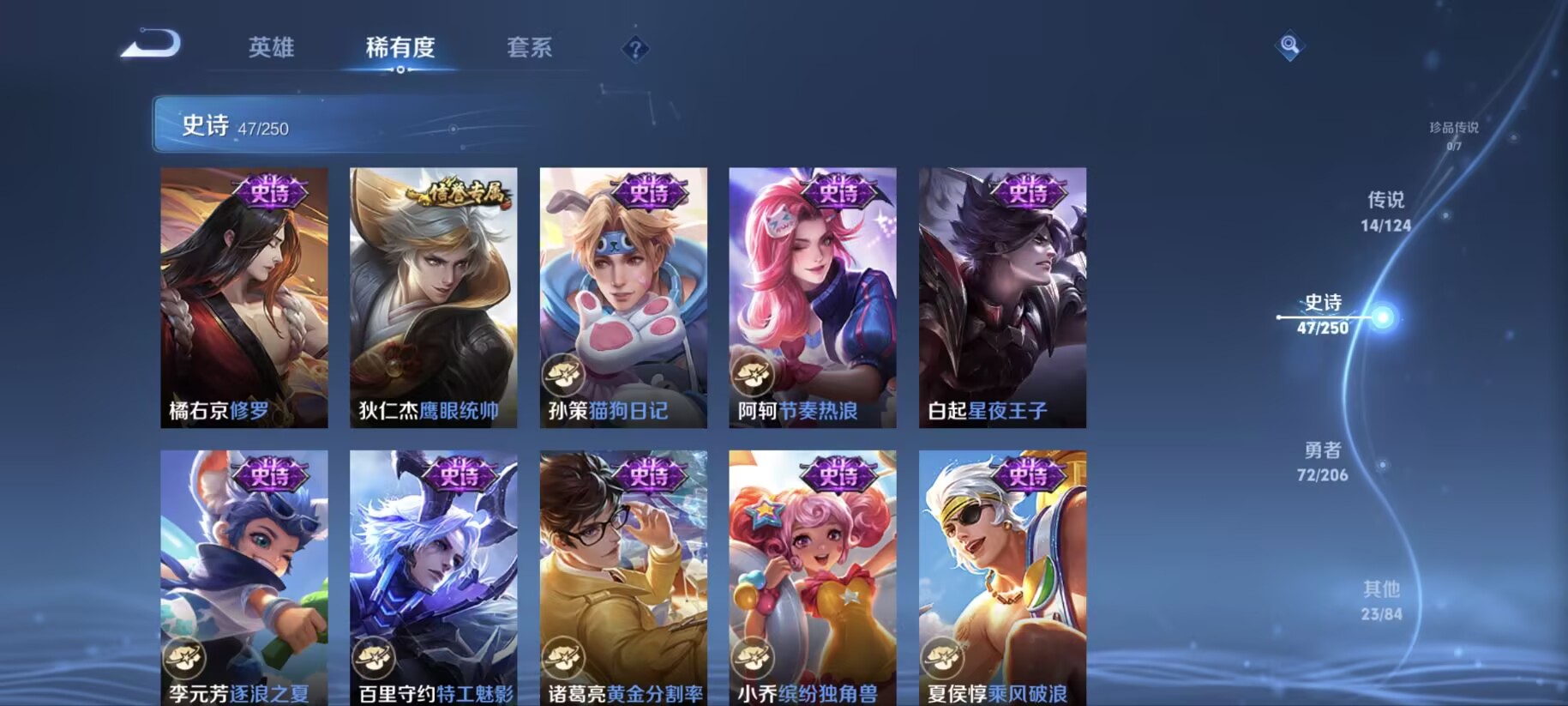 - [11463318]V10 6典藏 1无双 1珍品传说 40传说 126英雄 418皮肤 典藏英雄武则天 可修改实名 优质装备:天鹅之梦(小乔典藏),倪克斯神谕(宇宙婆娘),鸣剑·曳影,星域神启(倪克斯贼亮),银白咏叹调(倪克斯侍卫),青丘·九尾(妲己无双),拾光映像(瑶典藏),器灵·落星盏,黄金射手座,冠军飞将,云鹰飞将(小将军),绛天战甲(鸡嘴战神),猫影幻舞,久胜战神,炽阳神光,一念神魔,云霓雀翎,末日机甲-孙尚香(绿蚂蚱),仲夏夜之梦(大飞蛾),地狱之眼,音你心动-周瑜,胖达荣荣,李逍遥,乞巧织情,时之恋人-刘备(电焊工),游龙清影(小青龙),淬星耀世,超时空战士-狄仁杰,挚爱之约,挚爱花嫁,无双飞将,碎云,神器·狴犴令,炽翼辉光(娃娃菜牛角包),燃星之曲,浮生妄,记忆之芯(机甲兔),青丘·九尾,艾琳觅芳踪,涂山容容 传说皮:幻光神枪 珍宝阁皮:万物之道,优雅恋人,玩趣恶龙 限定皮:愿照·千秋盛(女娲年限),鸣野蒿,至尊宝,凤求凰(白切鸡),太华(伽罗年限),傲雪梅枪,星穹之声,白晶晶,诗剑行,匿光决锋者,怒海麟威,降魔,五谷丰年,青龙志(铠年限),天狼绘梦者,李小龙,玄武志(苏烈年限),朱雀志(守约年限),如梦令-后羿,大圣娶亲,匿光追影者,玉兔公主,启示之音,神器·万象笔,山海·玄木吟(马可年限) 史诗皮:灵蛊蚀心,星界战将,龙之律动,石田雨龙,茶境仙,破空之剑,百相守梦-百里守约,百相守梦-黄忠,遇见神鹿,紫霞仙子,苍穹之光,电玩小子(小书包),白龙吟,黄金分割率,特工魅影,千年之狐,永昼,江河有灵,魅语,百解令(蒙犽),高渐离燃音魔法,蒙恬荣光圣徽,无限星赏官,冰冠公主,青蛇,偶像歌手,白蛇,晚萤,电玩·爆裂旋风,暗夜猫娘,龙骑士(小龙虾),末日机甲-吕布,猫狗日记-孙策,猫狗日记-大乔,时之恋人-孙尚香,乱世虎臣,节奏热浪,修罗,女仆咖啡,摇滚巨星,水果甜心,绅士熊喵,天才门将,星夜王子,心灵骇客,时之奇旅-安琪拉,功夫厨神,德古拉伯爵,暗隐猎兽者,幽灵船长,鬼剑武藏,暗渊魔法,心灵战警,乐园奇幻夜,天秀·启明,舞动绿茵,地狱岩魂,诗语江南,纤云弄巧,繁星吟游(呼啦呼啦),拒霜思,缤纷独角兽,乘风破浪,逐浪之夏,龙鼓争鸣,月团寄思,水晶猎龙者,曙光守护者,热力回旋,箭羽风息,金属风暴,原初追逐者,圣诞狂欢,圣诞恋歌,鹰眼统帅,暗夜贵公子,魅力维加斯,黎明之约,雪