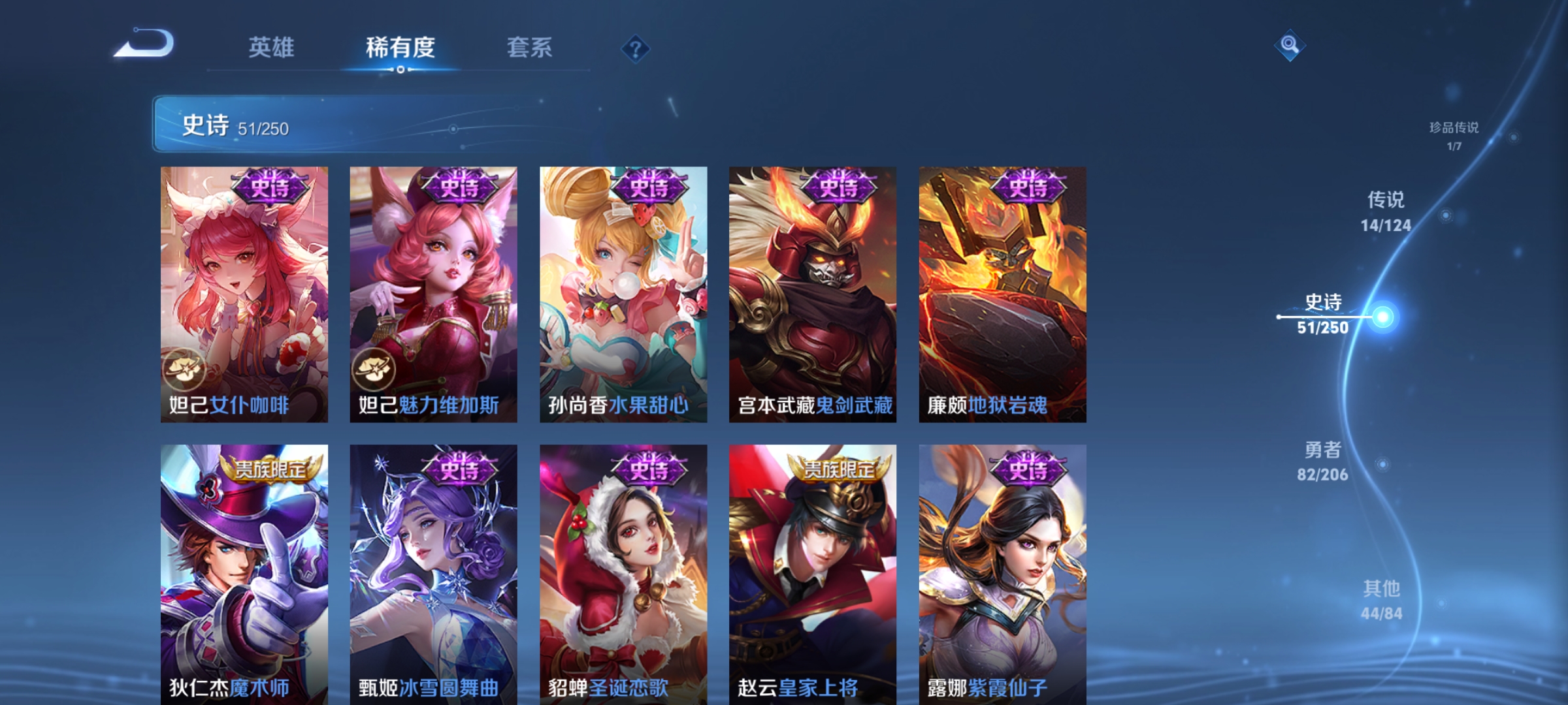 - [11933891]V10 2典藏 2无双 59传说 126英雄 440皮肤 典藏英雄武则天 可修改实名 优质装备:天鹅之梦(小乔典藏),杀手不太冷,韩信群星魔术团(韩信无双),天机白泽,黄金狮子座,黄金射手座,冠军飞将,云鹰飞将(小将军),黄金白羊座,猫影幻舞,久胜战神,炽阳神光,一念神魔,云霓雀翎,末日机甲-孙尚香(绿蚂蚱),地狱火,仲夏夜之梦(大飞蛾),地狱之眼,飞鸢探春,音你心动-周瑜,胖达荣荣,李逍遥,乞巧织情,时之恋人-刘备(电焊工),游龙清影(小青龙),超时空战士-狄仁杰,末日机甲-孙策,花朝如约(花篮子),无双飞将,神器·狴犴令,灼幽烈阳,惊梅引,小动物乐团,霜月吟,澜逐花归海,艾琳觅芳踪,金乌负日,黄金天蝎座,牧神诗旅 传说皮:乘龙·问璇玑(孙尚香年限),乘龙·铭钟鼎(赵云年限),乘龙·淬吴钩(孙策年限),貂蝉曦玄引,吕布曦玄引,典韦战鼓燎原,落雪白狼,九山相柳,云诺千山,祥瑞亨通,幻光神枪 珍宝阁皮:妄想食味,女武神,玩趣恶龙 限定皮:愿照·千秋盛(女娲年限),鸣野蒿,至尊宝,白虎志(电光耗子),凤求凰(白切鸡),凤凰于飞,太华(伽罗年限),武陵仙君(小桃花),傲雪梅枪,时之彼端,白鹤梁神女,神威(电光马子),飞衡(韩信年限),玄嵩(庄周年限),山海·碧波行(瑶年限),遇见飞天,高山流水,诗剑行,怒海麟威,五谷丰年,幽恒(沐浴露),梁祝,御风骁将(吕布年限),岱宗(典韦年限),天狼征服者,天狼绘梦者,李小龙,逐梦之影,朱雀志(守约年限),永曜之星,辉光之辰,如梦令-嫦娥,如梦令-后羿,圣诞老人,一生所爱,大圣娶亲,天魔缭乱,冰霜恋舞曲,乒乒小将,蜜橘之夏,时之祈愿-瑶(瑶传限),枫霜尽,山海·玄木吟(马可年限) 史诗皮:赞萌露比,苍鳞隐世,灵蛊蚀心,星界战将,龙之律动,石田雨龙,百相守梦-周瑜,幻珠鲛人,奇遇星旅,蔬乡物语(鲁班七号),乘龙·聚宝船(安琪拉年限),乘龙·忆丹青(大乔年限),百相守梦-黄忠,遇见神鹿,紫霞仙子,苍穹之光,电玩小子(小书包),白龙吟,黄金分割率,特工魅影,千年之狐,永昼,魅语,高渐离燃音魔法,蒙恬荣光圣徽,无限星赏官,冰冠公主,青蛇,偶像歌手,白蛇,晚萤,龙骑士(小龙虾),末日机甲-吕布,猫狗日记-孙策,猫狗日记-大乔,时之恋人-孙尚香,乱世虎臣,节奏热浪,修罗,女仆咖啡,摇滚巨星,水果甜心,绅士熊喵,天才门将,星夜王子,心灵骇客,功