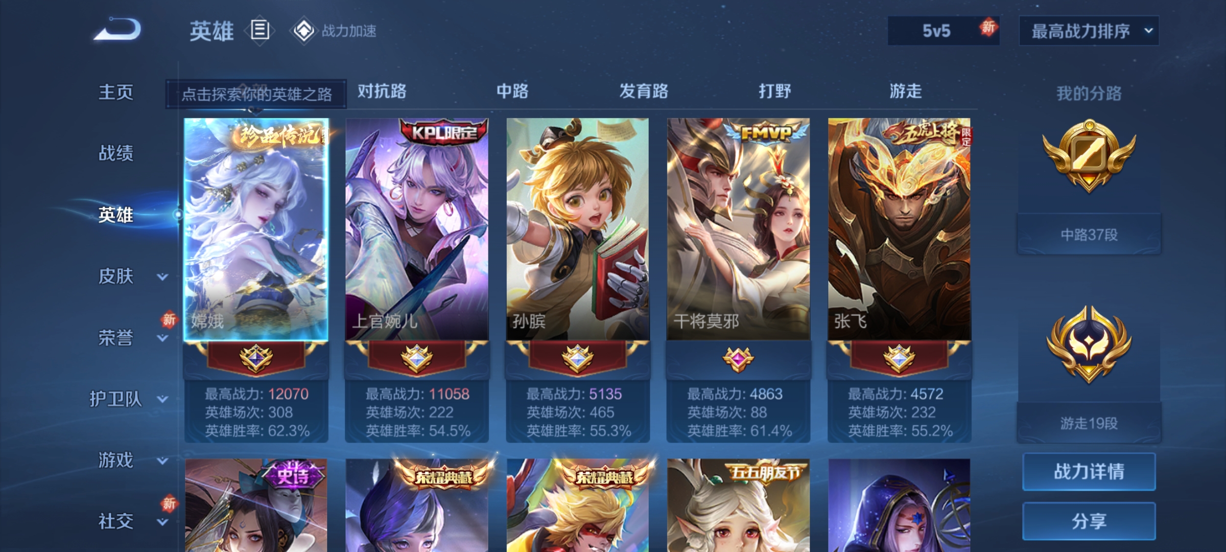 - PX_2062089-实名: 可修改 贵族等级: V6 英雄数: 122 皮肤数: 161 星传说: 金色仲夏夜 传说皮: 云鹰飞将,猫影幻舞,仲夏夜之梦,零号·赤焰,貂蝉曦玄引,续相思 限定皮: 遇见飞天,李小龙,梁祝,高山流水,时之奇旅-妲己,五谷丰年,山海·玄木吟,至美·乘鲤谣