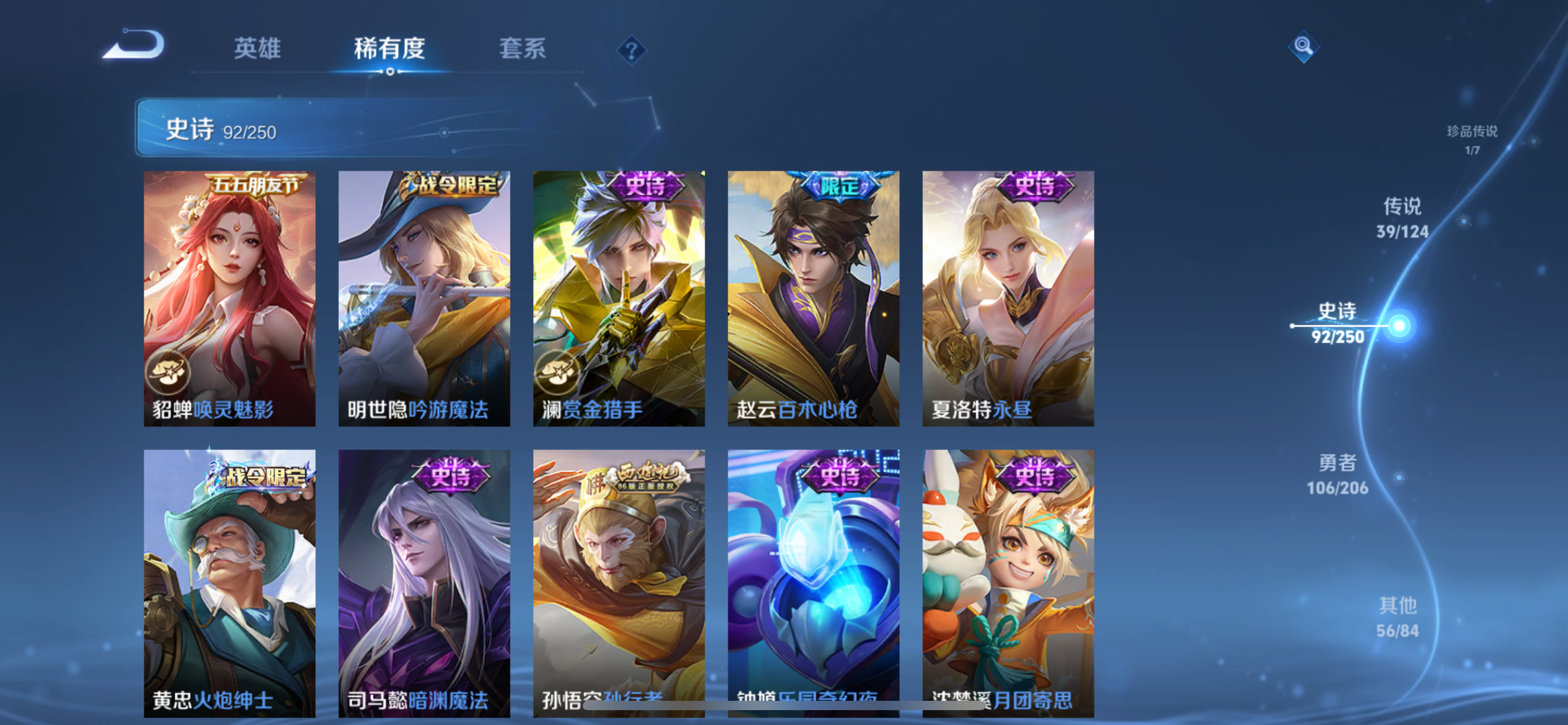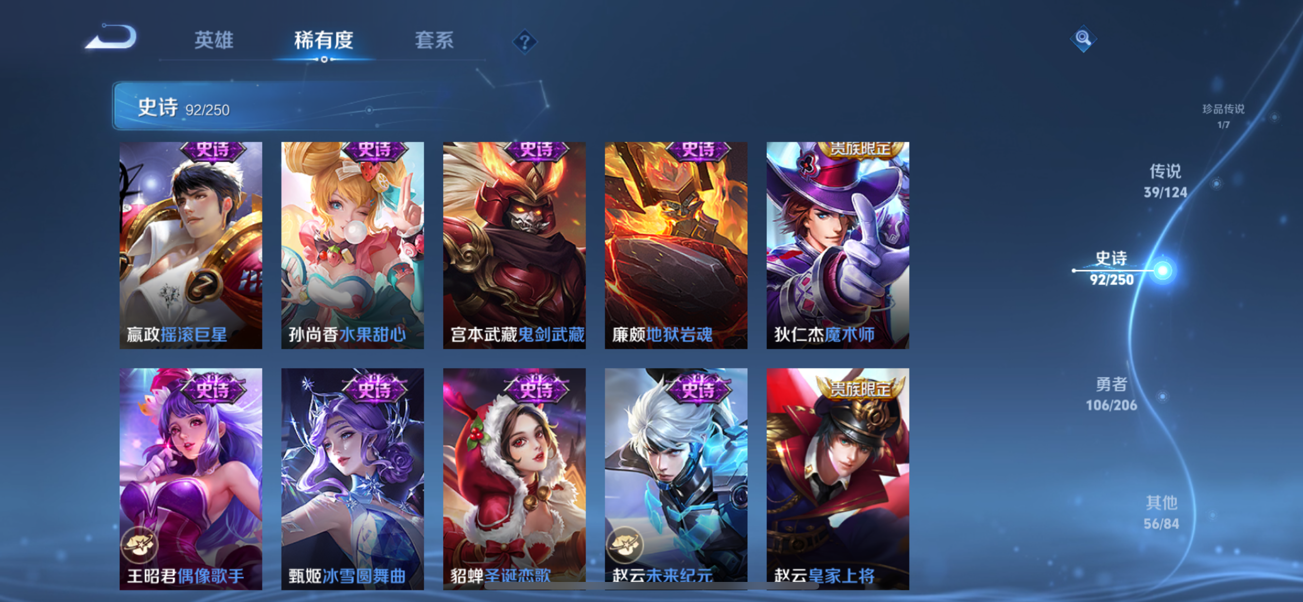[11496939]铠典藏,基德,澜蛇年限,久胜,李逍遥,仲夏夜,小青龙,深海之息,澜逐花归海,紫霞,至尊宝,马可年限,-可二次-122英雄-295皮肤-1典藏-39传说-92史诗 游龙清影-西施 淬星耀世-赵云 炽阳神光-镜 山海·苍雷引-曜 异界灵契-孙尚香 山海·炽霜斩-李信 齐天大圣-孙悟空 深海之息-马可波罗 遇见神鼓-吕布 浮生妄-夏洛特 无尽星芒-后羿 山海·玄木吟-马可波罗 冰冠公主-雅典娜 天狼绘梦者-上官婉儿 神威-马超 唐三藏-金蝉 至尊宝-孙悟空 女武神-艾琳 街头霸王-韩信