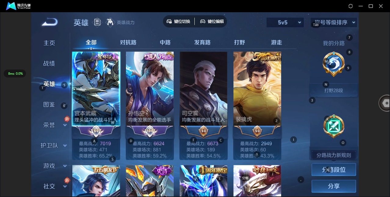 - [36997]英雄数: 12 皮肤数: 2 稀有英雄: 武则天,嬴政,韩信