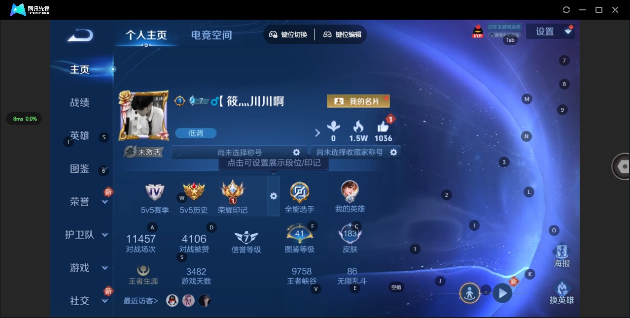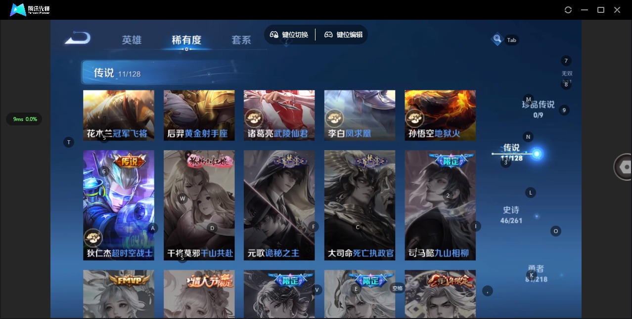 - [11883519]V8 1典藏 1珍品传说 16传说 125英雄 345皮肤 可修改实名 优质装备:鸣剑·曳影,怪盗基德,云鹰飞将(小将军),久胜战神,炽阳神光,末日机甲-孙尚香(绿蚂蚱),仲夏夜之梦(大飞蛾),零号·赤焰,地狱之眼,妄想实况,澜逐花归海 传说皮:幻光神枪 珍宝阁皮:胡桃夹子,万物之道,优雅恋人 限定皮:愿照·千秋盛(女娲年限),逐霄战戟,鸣野蒿,夏侯惇霜北刀,至尊宝,凤凰于飞,时雨天司(水龙头),飞衡(韩信年限),遇见飞天,高山流水,诗剑行,五谷丰年,梁祝,李小龙,默契交锋-花木兰,美猴王,山海·玄木吟(马可年限) 史诗皮:器灵·浮梦炉,化蝶舞,星界战将,谪仙醉月,龙之律动,雪豹·霜爪,茶境仙,怒海争锋,炽弈燎原,破空之剑,上官婉儿群星魔术团,百相守梦-百里守约,星界特工,百相守梦-黄忠,苍穹之光,白龙吟,特工魅影,千年之狐,江河有灵,百解令(蒙犽),高渐离燃音魔法,蒙恬荣光圣徽,无限星赏官,冰冠公主,青蛇,电玩·爆裂旋风,末日机甲-吕布,猫狗日记-孙策,猫狗日记-大乔,乱世虎臣,节奏热浪,修罗,摇滚巨星,水果甜心,绅士熊喵,天才门将,星夜王子,心灵骇客,功夫厨神,德古拉伯爵,暗隐猎兽者,幽灵船长,鬼剑武藏,暗渊魔法,心灵战警,天秀·启明,地狱岩魂,纤云弄巧,繁星吟游(呼啦呼啦),拒霜思,缤纷独角兽,乘风破浪,逐浪之夏,水晶猎龙者,曙光守护者,金属风暴,原初追逐者,圣诞狂欢,圣诞恋歌,鹰眼统帅,王者之锤,暗夜贵公子,黎明之约,无心,未来纪元-赵云