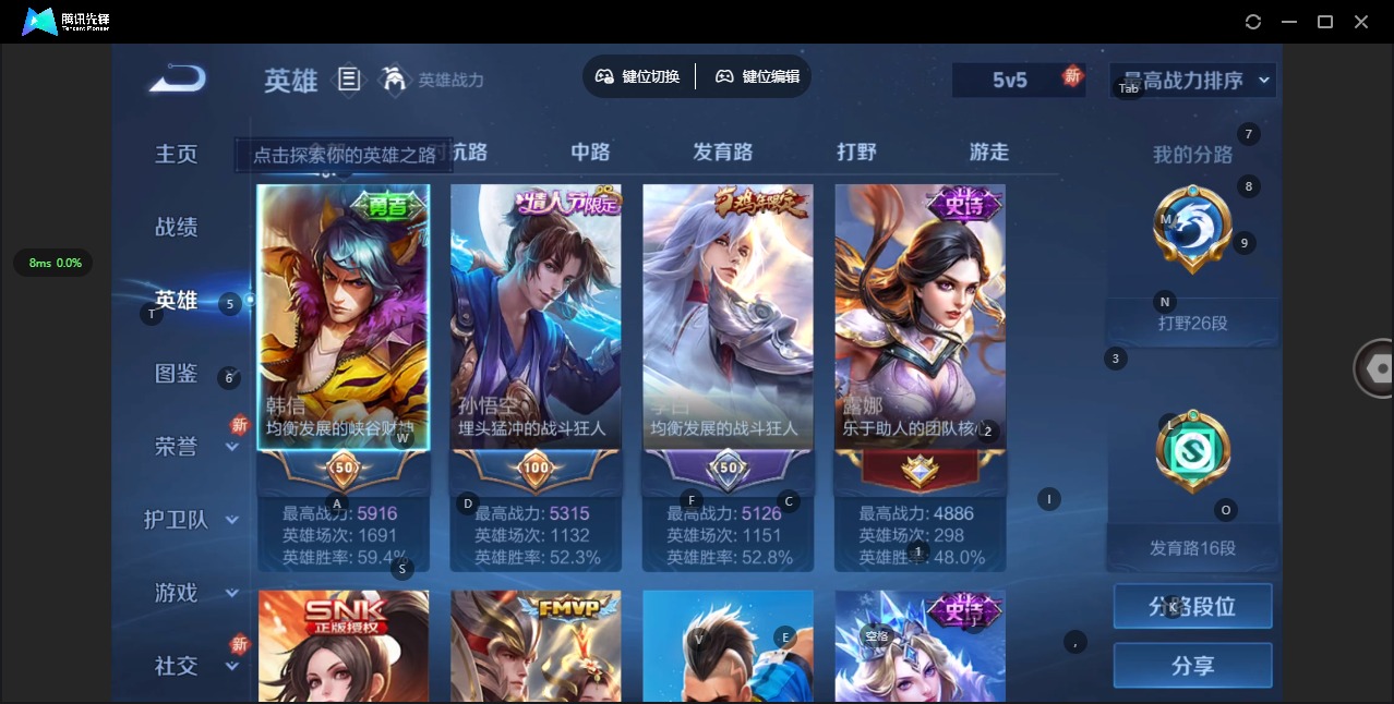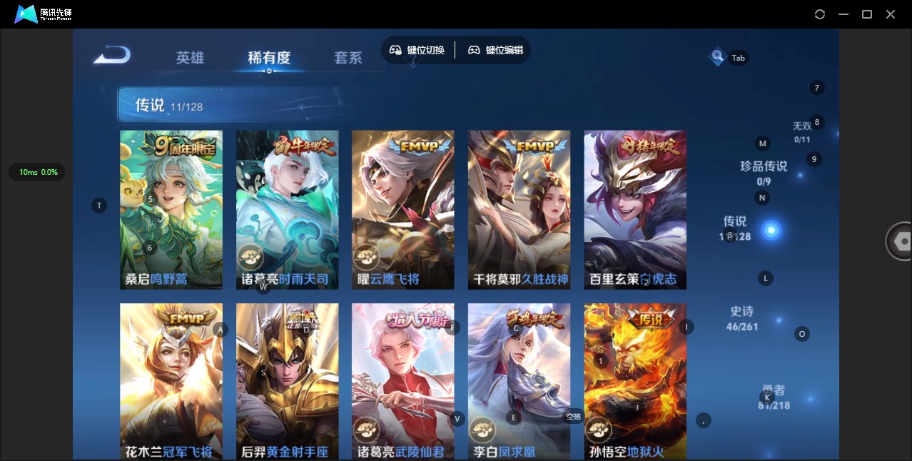 - [12149927]V6 4传说 112英雄 103皮肤 可修改实名 优质装备:云鹰飞将(小将军),久胜战神,炽阳神光,无双飞将,涂山容容 限定皮:逐梦之音 史诗皮:星界战将,紫霞仙子,千年之狐,蒙恬荣光圣徽,晚萤,修罗,水果甜心,幽灵船长,鬼剑武藏,纤云弄巧,水晶猎龙者,赏金猎手