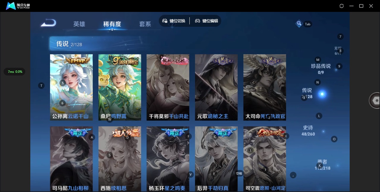 - [11520222]V7 4传说 124英雄 211皮肤 可修改实名 优质装备:黄金射手座 珍宝阁皮:优雅恋人,玩趣恶龙 限定皮:鸣野蒿,夏侯惇霜北刀,五谷丰年,梁祝,李小龙,默契交锋-兰陵王,默契交锋-花木兰 史诗皮:灵蛊蚀心,电玩小子(小书包),特工魅影,电玩·爆裂旋风,江河有灵,末日机甲-吕布,女仆咖啡,摇滚巨星,水果甜心,天才门将,心灵骇客,暗隐猎兽者,鬼剑武藏,心灵战警,纤云弄巧,缤纷独角兽,逐浪之夏,金属风暴,鹰眼统帅,未来纪元-赵云