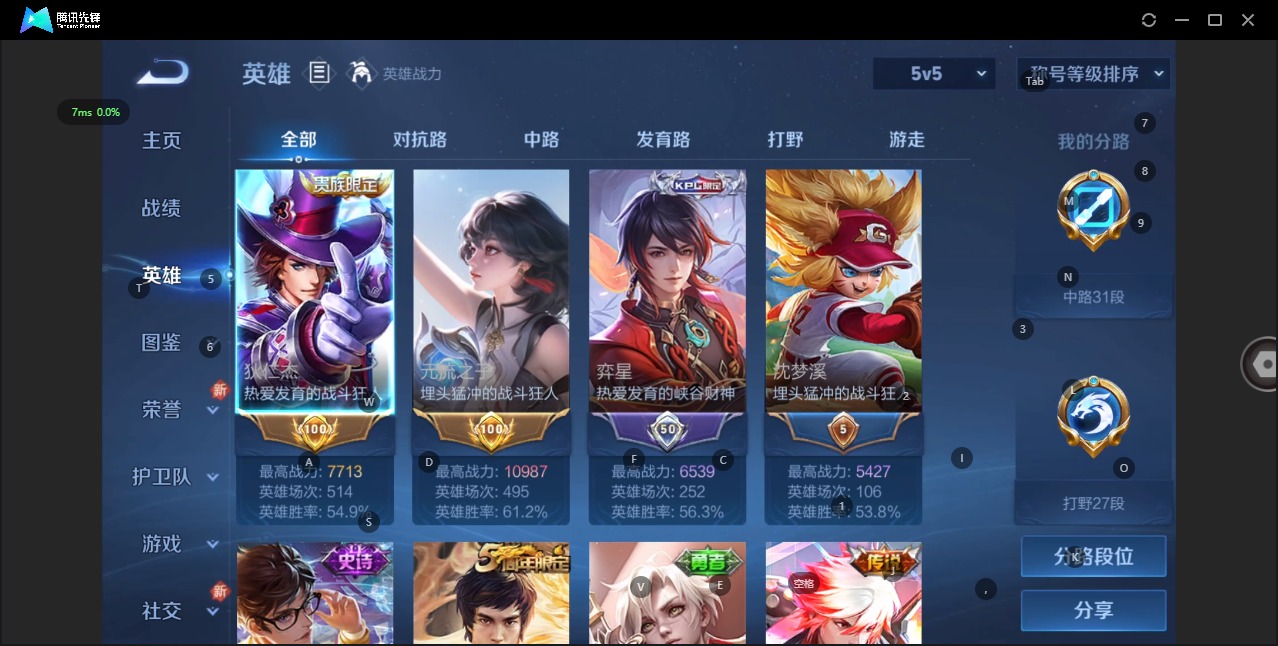 [11497573]V7 4传说 122英雄 203皮肤 可修改实名 传说皮:地狱火,超时空战士-狄仁杰,电玩·雷克斯 珍宝阁皮:蔷薇恋人 限定皮:鸣野蒿,梁祝,李小龙,逐梦之光 史诗皮:星界战将,炽弈燎原,黄金分割率,特工魅影,千年之狐,江河有灵,高渐离燃音魔法,蒙恬荣光圣徽,晚萤,魅语,猫狗日记-孙策,节奏热浪,修罗,摇滚巨星,水果甜心,绅士熊喵,天才门将,星夜王子,心灵骇客,功夫厨神,德古拉伯爵,幽灵船长,鬼剑武藏,地狱岩魂,纤云弄巧,繁星吟游(呼啦呼啦),缤纷独角兽,乘风破浪,逐浪之夏,水晶猎龙者,曙光守护者,热力回旋,箭羽风息,金属风暴,圣诞狂欢,圣诞恋歌,鹰眼统帅,暗夜贵公子,黎明之约,顽趣-阿古朵,无心,玫瑰异探