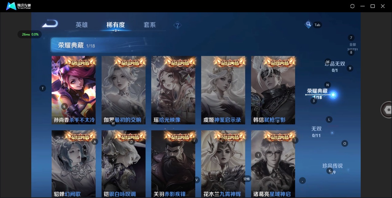 - [12294421]V7 7传说 124英雄 244皮肤 可修改实名 女号 优质装备:黄金狮子座,云鹰飞将(小将军),炽阳神光,一念神魔,地狱之眼,山海·苍雷引(电光曜子),鹤羽星尊,涂山容容 珍宝阁皮:胡桃夹子,优雅恋人 限定皮:逐霄战戟,至尊宝,神威(电光马子),高山流水,五谷丰年,梁祝,李小龙,如梦令-后羿 史诗皮:龙之律动,蔬乡物语(鲁班七号),百相守梦-黄忠,特工魅影,千年之狐,永昼,江河有灵,鹤归松栖(赵怀真),高渐离燃音魔法,蒙恬荣光圣徽,冰冠公主,晚萤,末日机甲-吕布,时之恋人-孙尚香,乱世虎臣,修罗,女仆咖啡,摇滚巨星,水果甜心,绅士熊喵,天才门将,星夜王子,功夫厨神,暗隐猎兽者,幽灵船长,鬼剑武藏,心灵战警,天秀·启明,纤云弄巧,繁星吟游(呼啦呼啦),拒霜思,缤纷独角兽,乘风破浪,水晶猎龙者,曙光守护者,箭羽风息,唤灵魅影,金属风暴,原初追逐者,圣诞狂欢,圣诞恋歌,鹰眼统帅,魅力维加斯,黎明之约,赏金猎手,未来纪元-赵云