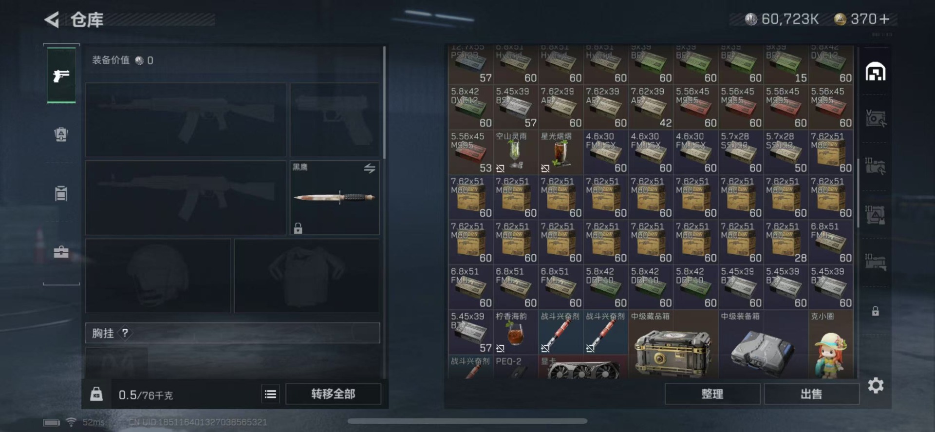 [11497790]总资产:203.9 4传说枪械 可二次 可修改实名 烽火地带段位:铂金 全面战场段位:列兵 哈夫币:60.723 传说武器皮肤:SR-25射手步枪-水墨云图,SCAR-H战斗步枪-铁艺苍穹,AK-12突击步枪-夜鹰,M7战斗步枪-维京 史诗武器皮肤:SR-3M紧凑突击步枪-英雄,QBZ95-1突击步枪-ACE,M4A1突击步枪-特勤执行,AUG突击步枪-特勤执行,Vector冲锋枪-红色彗星,PTR-32战斗步枪-ACE,SKS射手步枪-ACE,M700狙击步枪-蝮蛇,G3战斗步枪-战场英杰,SR-25射手步枪-尖端治疗,AS Val突击步枪-尖端治疗,M700狙击步枪-守夜人,SG552突击步枪-尖端治疗,Ash-12战斗步枪-守夜人,勇士冲锋枪-深海恐惧,AKM突击步枪-林中猎手,M16A4突击步枪-竞赛选手,PKM通用机枪-守夜人,M1014霰弹枪-林中猎手,SCAR-H战斗步枪-囚徒,QBZ95-1突击步枪-曙光,UZI冲锋枪-危险实验,M249轻机枪-维京,SCAR-H战斗步枪-危险实验,沙漠之鹰-曙光,Vector冲锋枪-阿萨拉文明,SVD狙击步枪-阿萨拉工艺,AS Val突击步枪-刀锋,QSZ92G-风林火山,93R-博士