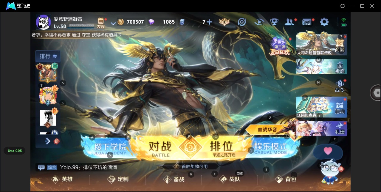 - PX_1896269-安卓Q 【可二次】 英雄数量:122 皮肤数量:264 贵族等级:贵族V8 极品女号!!!武则天 幻阙歌 天鹅之梦 倪克斯神谕 朵莉亚心动手记 灼幽烈阳 追逃游戏女 优雅恋人 山海琳琅生 纯白花嫁 海诺心动手记 山海碧波行 寅虎心曲 寅虎展翼 凤凰于飞 魔法小厨娘 遇见神鹿 霸王别姬女 朱雀志 一生所爱 挚爱花嫁 海洋之心 仲夏夜之梦 游龙清影 热情桑巴 白晶晶 遇见胡旋 音