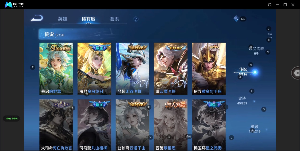 - PX_2095018-贵族8/皮肤241/典藏1/传说19/史诗70/英雄125/鸣剑曳影/马可波罗怪盗基德/蔷薇恋人/特工战影/地狱火/末日机甲女/仲夏夜之梦/武陵仙君/黄金射手座/云霓雀翎/久胜战神/启明星使/游龙清影/碎云/诗剑行/妄想实况/妄想奇谈/惊梅引/战鼓燎原/桑启鸣野蒿/裴擒虎祥瑞亨通/女娲愿照千秋盛/司空震愿照山河定/蔡文姬夏日便利店/虞姬夏日便利店/姜子牙天穹之誓/狄仁杰阴阳师