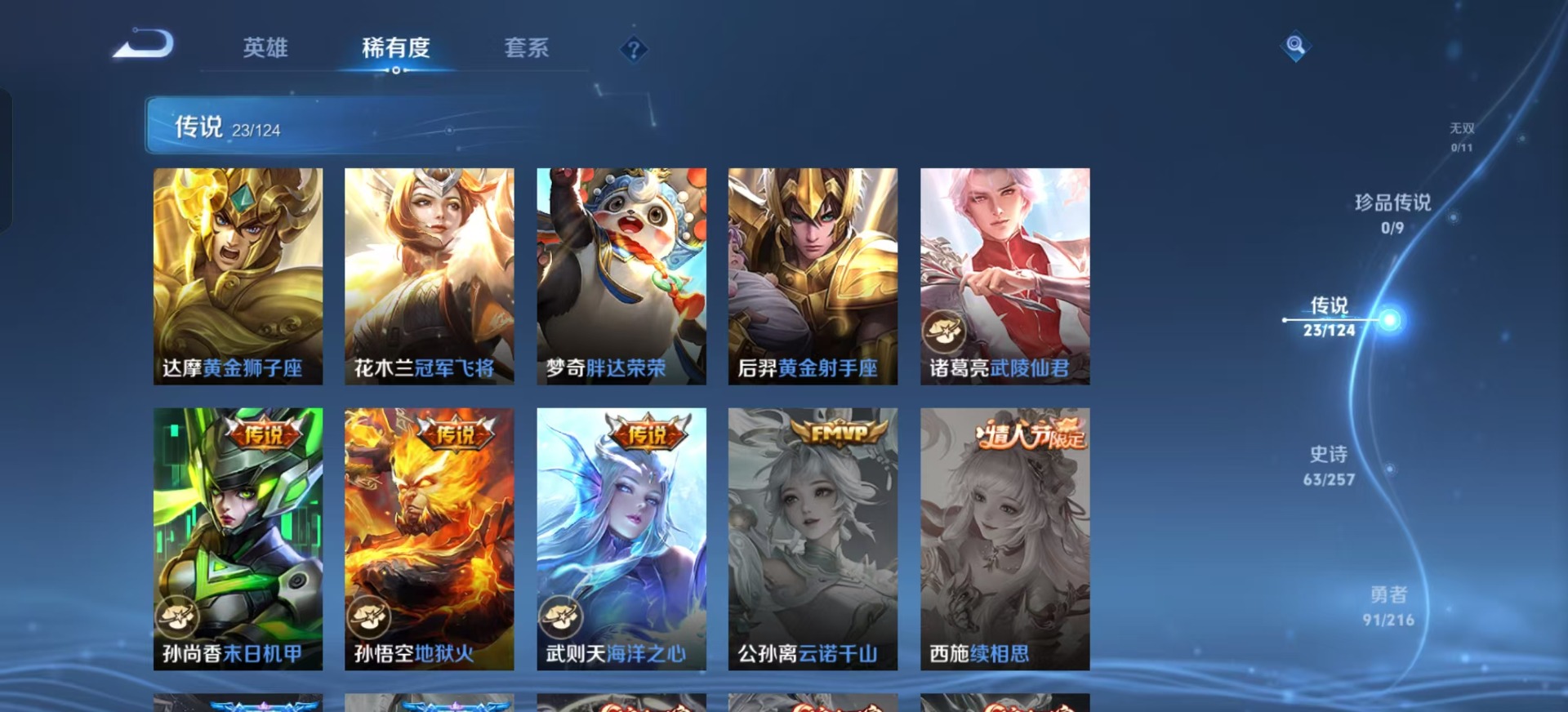[11497958]V8 2典藏 23传说 125英雄 231皮肤 典藏英雄武则天 可修改实名 女号 荣耀水晶:鸣剑·曳影,杀手不太冷 传说皮:黄金狮子座,黄金射手座,黄金白羊座,零号·赤焰,地狱火,海洋之心,末日机甲-孙尚香(绿蚂蚱),云霓雀翎,淬星耀世,冠军飞将,久胜战神,猫影幻舞,云鹰飞将(小将军),音你心动-小乔,音你心动-周瑜,胖达荣荣,时之恋人-刘备(电焊工) 珍宝阁皮:优雅恋人 限定皮:太华(伽罗年限),武陵仙君(小桃花),时之彼端,时雨天司(水龙头),神威(电光马子),飞衡(韩信年限),瑞麟志(木兰年限),冰锋战神,梁祝,逐梦之星,祈雪灵祝(雪兔子),李小龙,辉光之辰,如梦令-后羿,霸王别姬-项羽,孙行者,青春决赛季,冰霜恋舞曲,蜜橘之夏,启示之音 史诗皮:石田雨龙,紫霞仙子,苍穹之光,电玩小子(小书包),白龙吟,千年之狐,偶像歌手,晚萤,无限星赏官,魅语,暗夜猫娘,猫狗日记-孙策,时之恋人-孙尚香,乱世虎臣,修罗,水果甜心,天才门将,星夜王子,德古拉伯爵,幽灵船长,鬼剑武藏,舞动绿茵,地狱岩魂,纤云弄巧,繁星吟游(呼啦呼啦),逐浪之夏,曙光守护者,金属风暴,原初追逐者,圣诞狂欢,鹰眼统帅,魅力维加斯,黎明之约,赏金猎手,未来纪元-赵云