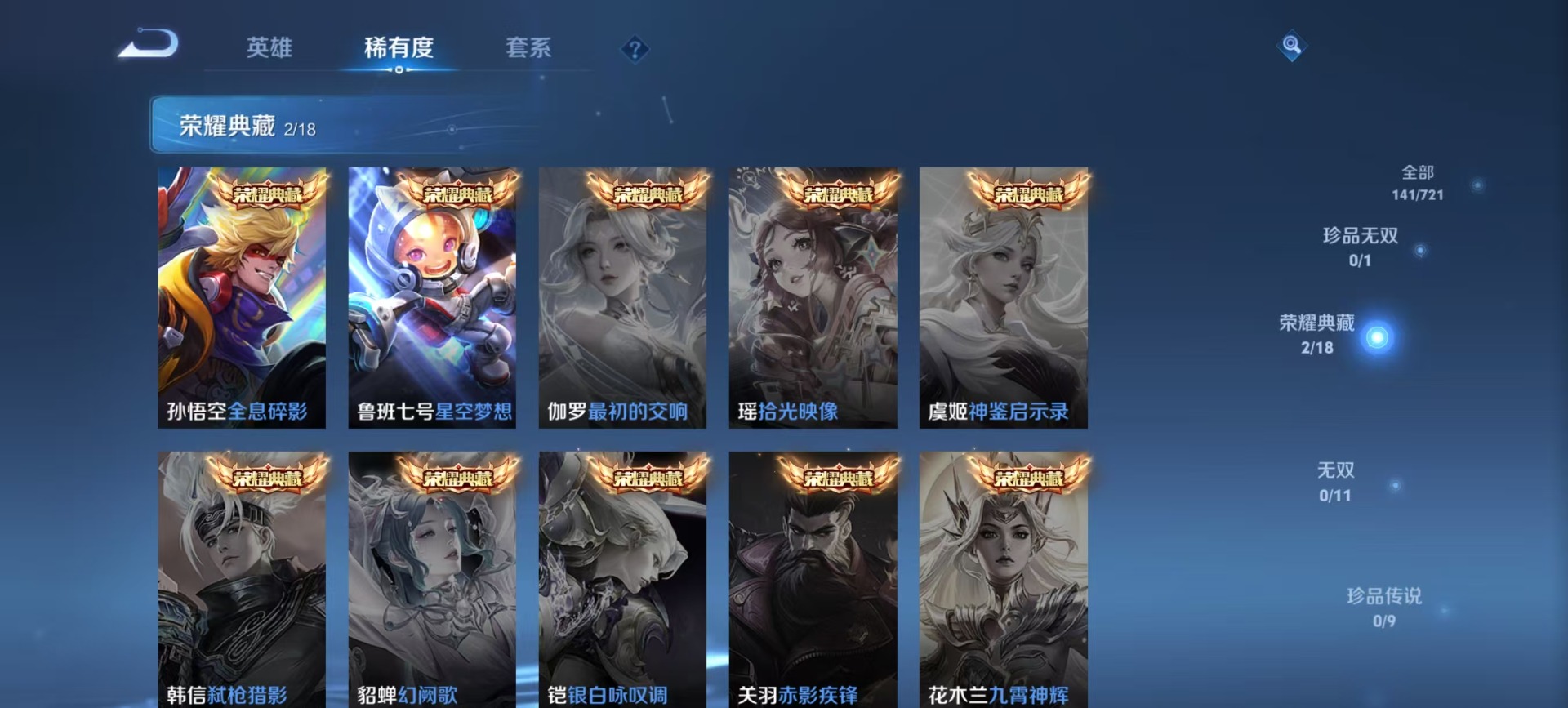 [11497980]V7 2典藏 1传说 125英雄 141皮肤 典藏英雄武则天 可修改实名 荣耀水晶:全息碎影(猴子典藏),星空梦想(太空人) 传说皮:海洋之心 珍宝阁皮:万物之道 限定皮:大圣娶亲 史诗皮:龙之律动,幻珠鲛人,苍穹之光,白龙吟,千年之狐,冰冠公主,偶像歌手,魅语,末日机甲-吕布,女仆咖啡,水果甜心,天才门将,星夜王子,心灵骇客,功夫厨神,德古拉伯爵,暗隐猎兽者,幽灵船长,纤云弄巧,圣诞恋歌,鹰眼统帅,魅力维加斯