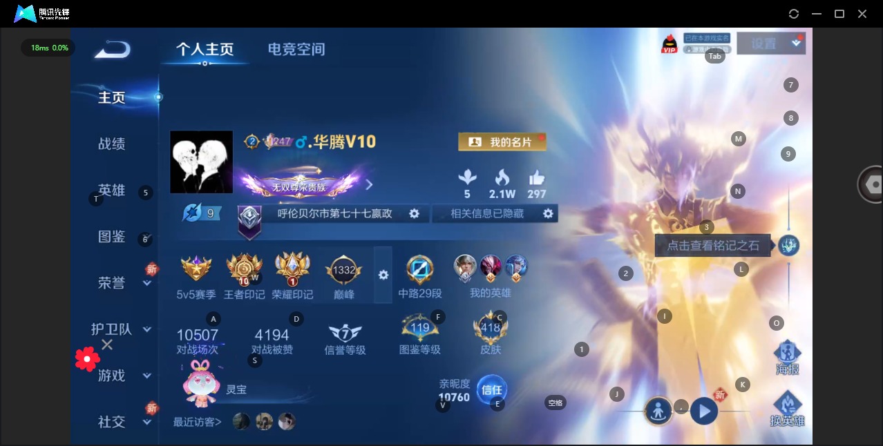 - PX_2077631-贵族等级: V5 英雄数: 86 皮肤数: 54 珍品传说: 大耳狗之梦 传说皮: 炽阳神光