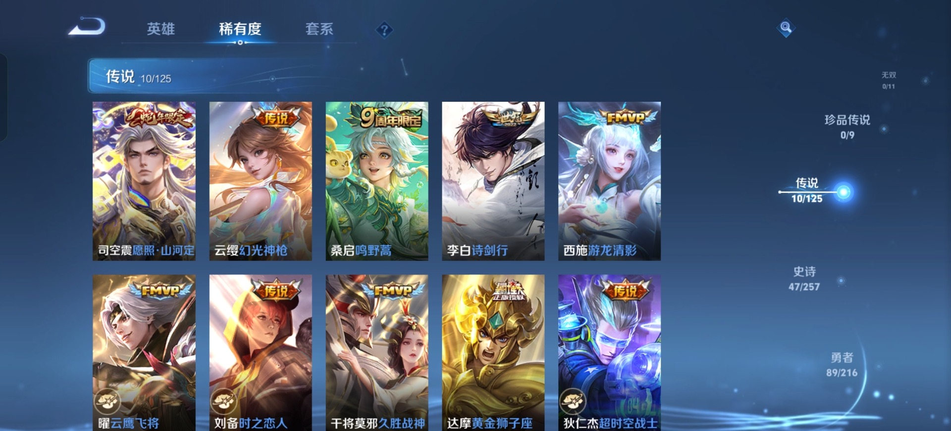 - PX_2093921-实名: 可修改 贵族等级: V5 英雄数: 77 皮肤数: 46 传说皮: 云鹰飞将 限定皮: 逐霄战戟,愿照·山河定