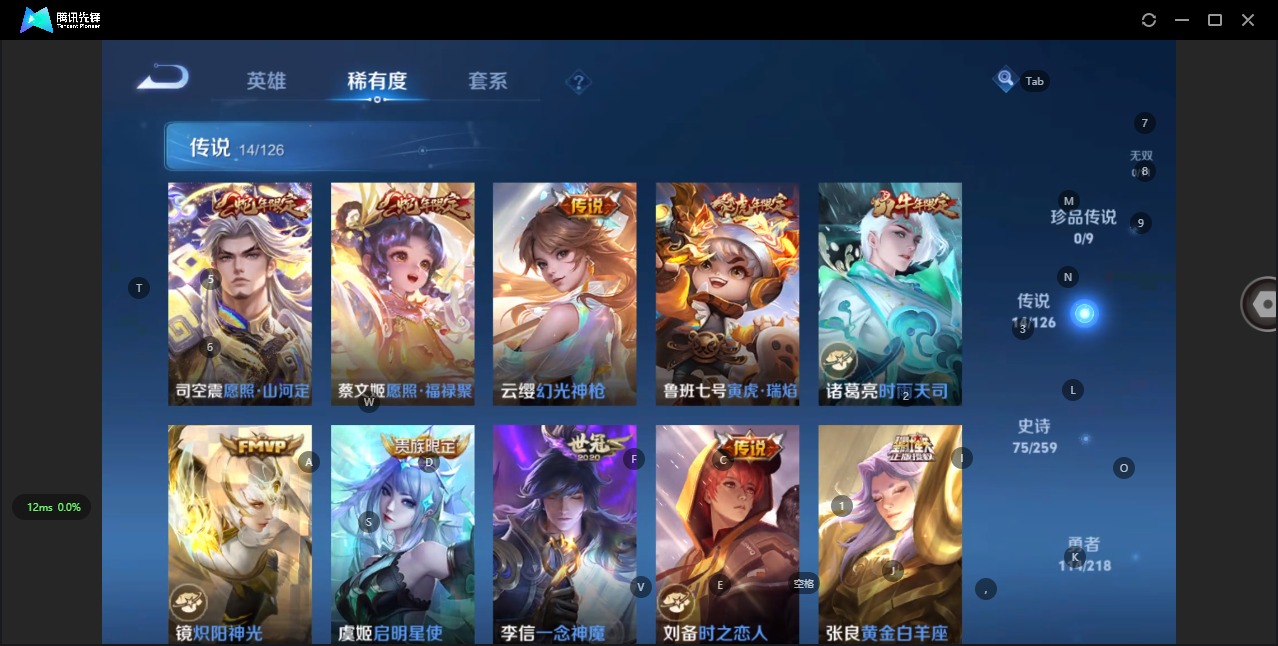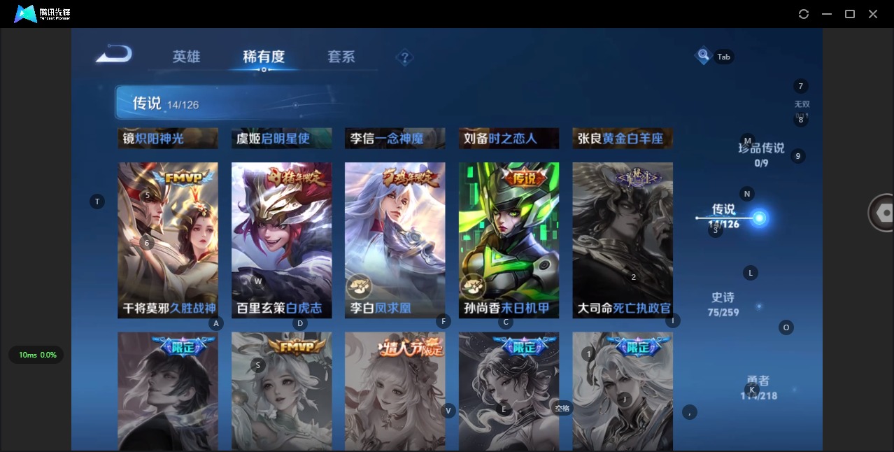 - [11743162]猴子典藏,久胜,紫霞,-可二次-108英雄-165皮肤-1典藏-7传说-31史诗 辉光之辰-后羿 街头霸王-韩信