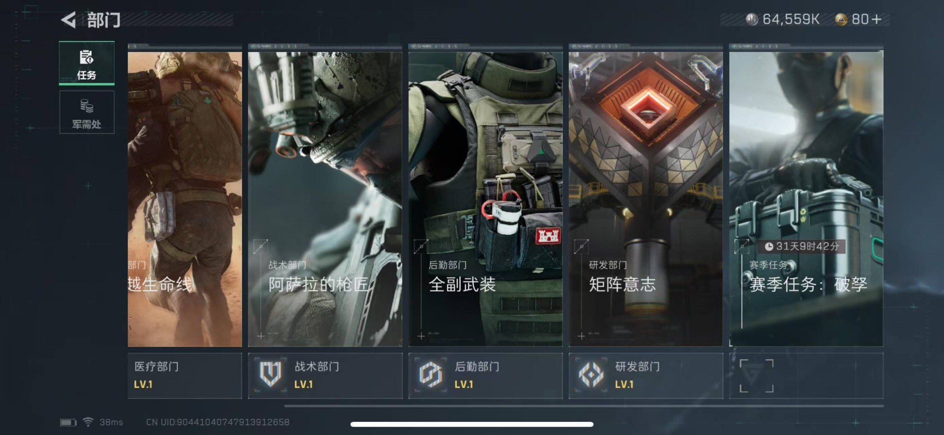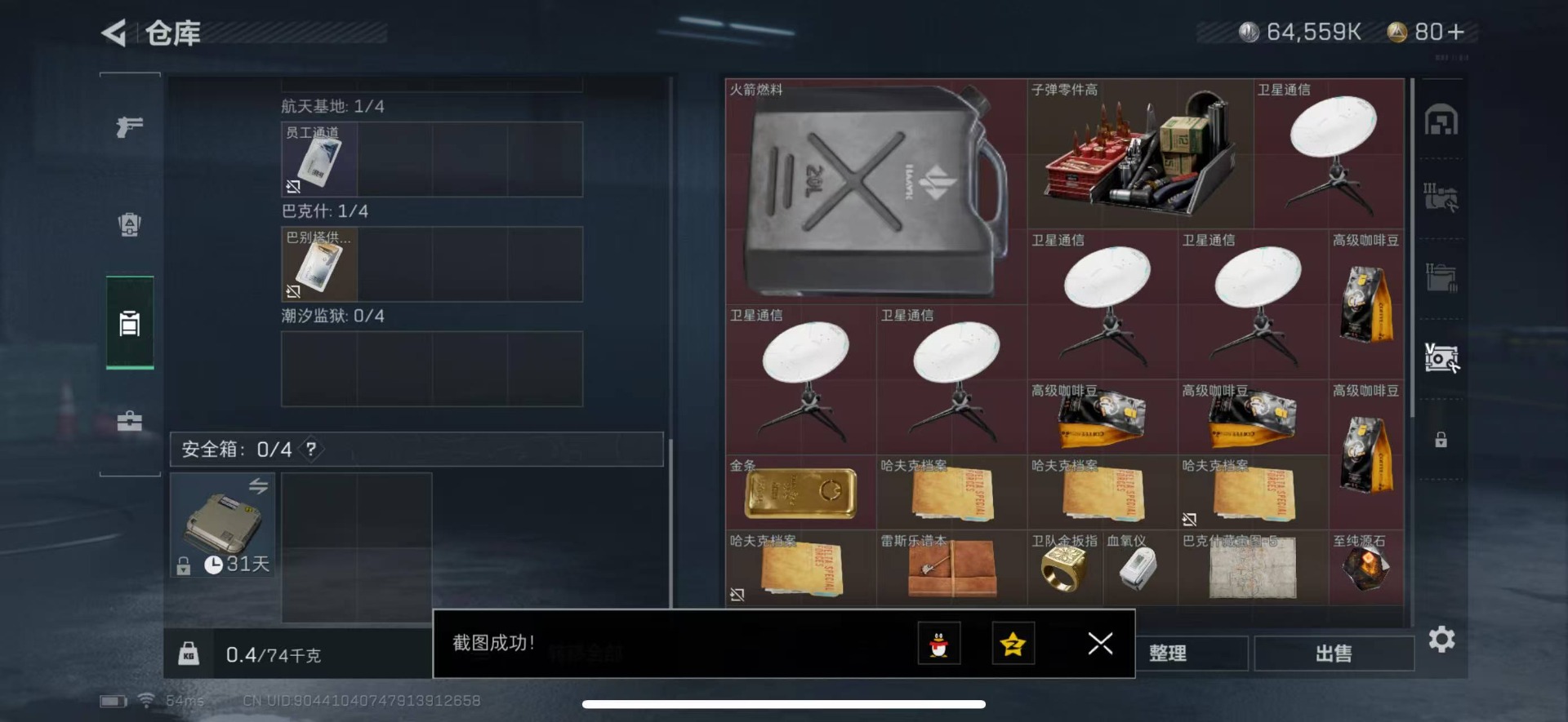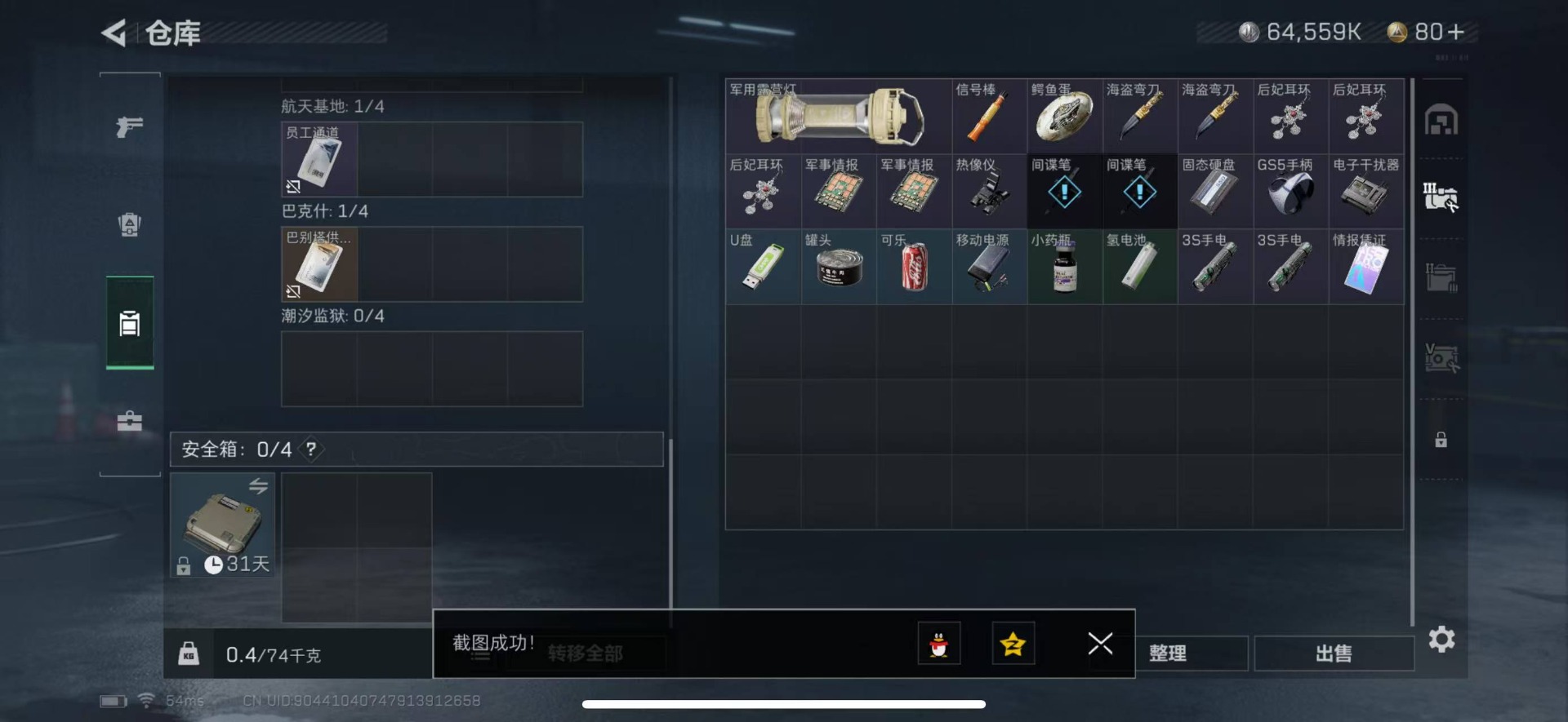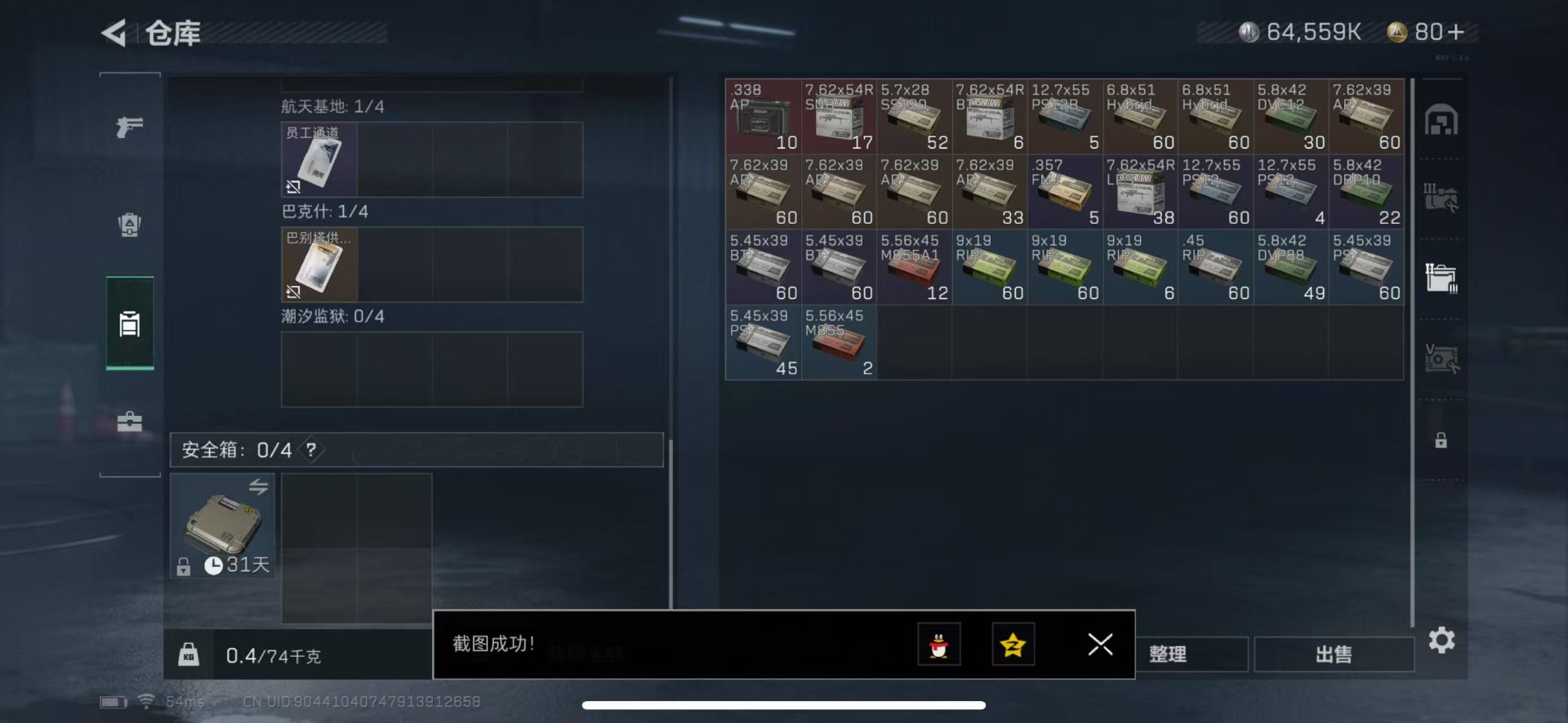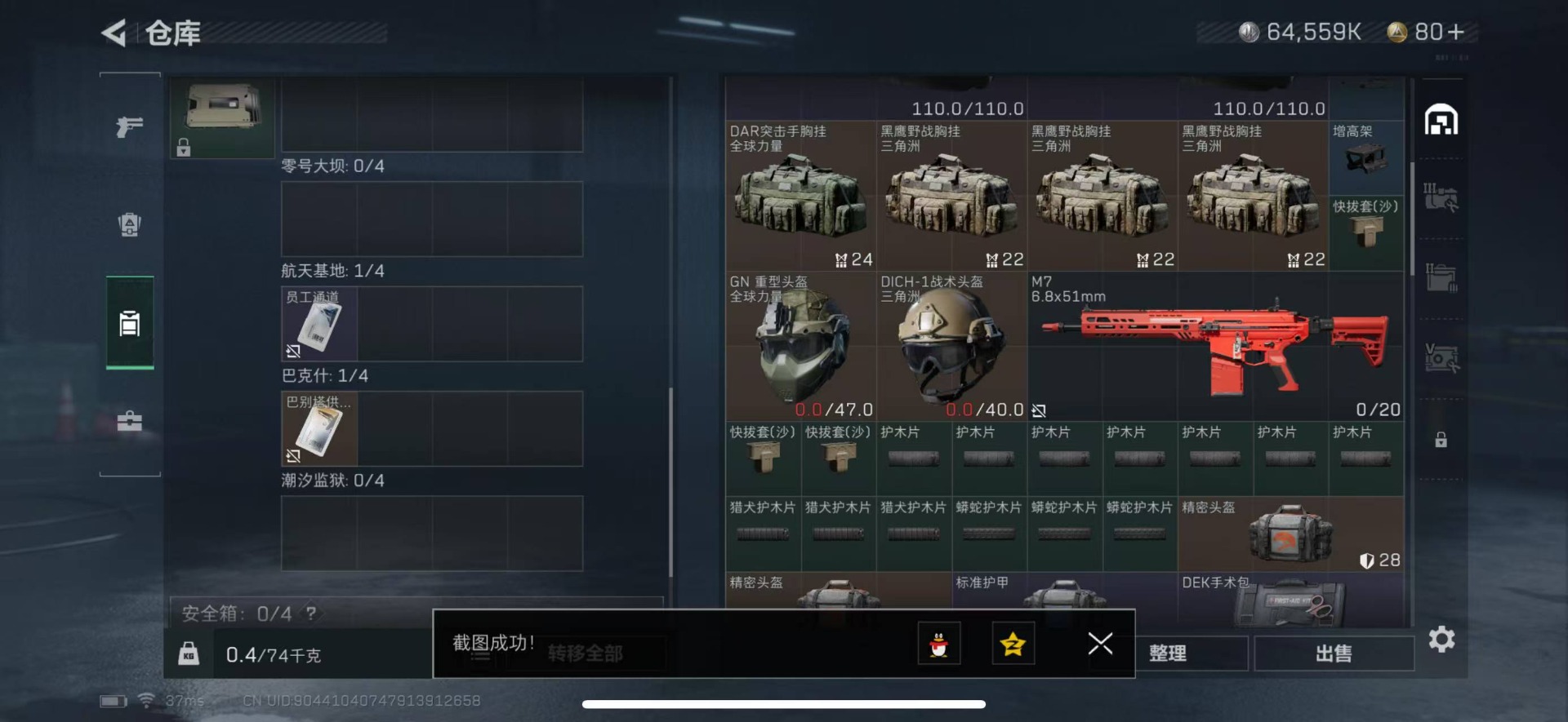 [11498216]总资产:90.2 3传说枪械 进阶安全箱(2×2)9.15号到期 可二次 可修改实名 烽火地带段位:黑鹰 全面战场段位:无段位 哈夫币:64.559 传说武器皮肤:复合弓-黑-天际线,CAR-15突击步枪-阿米娅,勇士冲锋枪-能天使-午夜邮差 史诗武器皮肤:M16A4突击步枪-竞赛选手,SV-98狙击步枪-囚徒