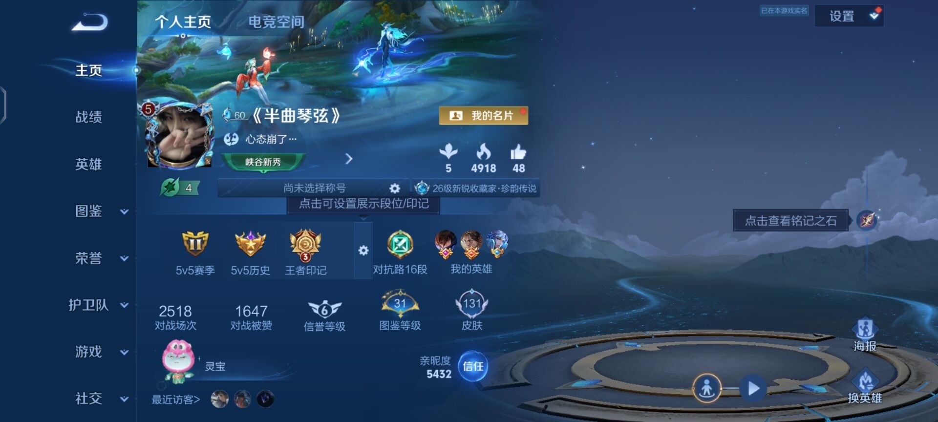 [11498227]V5 1典藏 1珍品传说 4传说 123英雄 131皮肤 可修改实名 优质装备:弑枪猎影(韩信典藏),黑崎一护,久胜战神,地狱之眼 珍宝阁皮:玩趣恶龙 限定皮:愿照·九州拓(澜年限),鸣野蒿,五谷丰年,李小龙,山海·玄木吟(马可年限) 史诗皮:苍鳞隐世,龙之律动,破空之剑,蒙犽顽岩魄,百相守梦-百里守约,百相守梦-黄忠,紫霞仙子,电玩小子(小书包),黄金分割率,江河有灵,百解令(蒙犽),无限星赏官,末日机甲-吕布,猫狗日记-孙策,乱世虎臣,水果甜心,德古拉伯爵,暗隐猎兽者,幽灵船长,鬼剑武藏,天秀·启明,舞动绿茵,拒霜思,缤纷独角兽,逐浪之夏,水晶猎龙者,鹰眼统帅,魅力维加斯,未来纪元-赵云