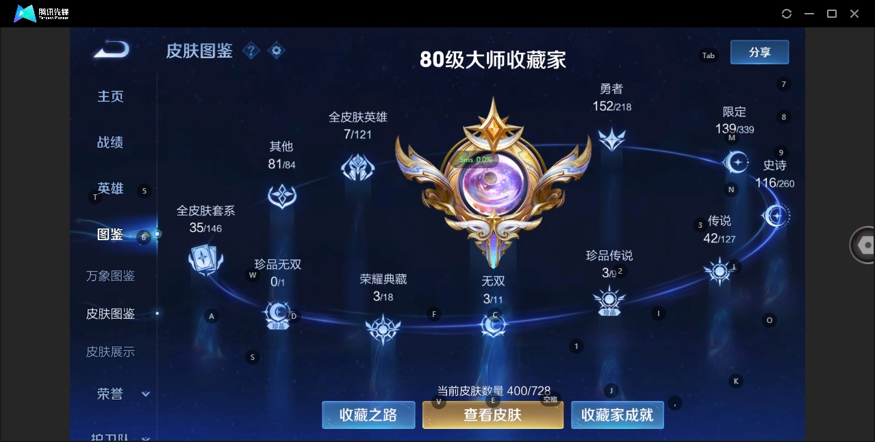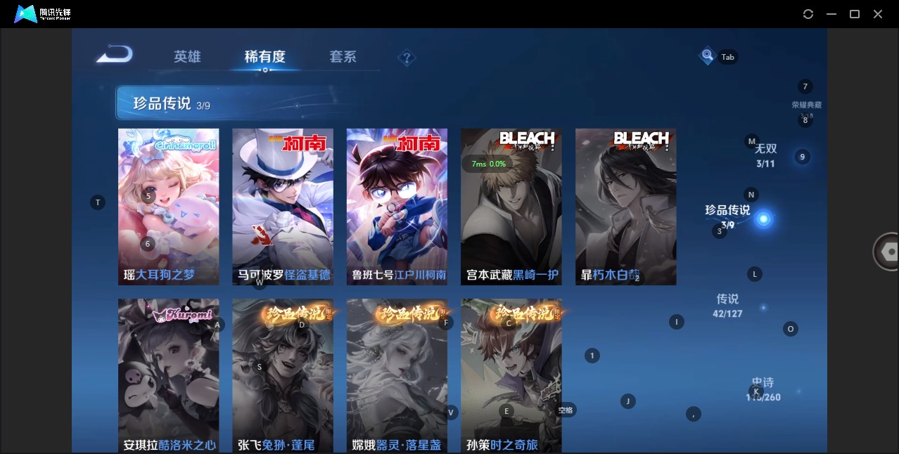 - [11601403]V7 2典藏 13传说 125英雄 261皮肤 可修改实名 优质装备:鸣剑·曳影,弑枪猎影(韩信典藏),黄金狮子座,云鹰飞将(小将军),一念神魔,零号·赤焰,地狱之眼,淬星耀世,挚爱之约,神器·狴犴令 传说皮:乘龙·铭钟鼎(赵云年限),幻光神枪 珍宝阁皮:万物之道,优雅恋人,玩趣恶龙 限定皮:愿照·九州拓(澜年限),鸣野蒿,遇见飞天,高山流水,五谷丰年,梁祝,龙胆,李小龙,寅虎·赤拳(老虎年限) 史诗皮:鸭鸭历险记-刘禅,化蝶舞,星界战将,龙之律动,茶境仙,琥珀纪元伽罗,百相守梦-百里守约,百相守梦-黄忠,紫霞仙子,电玩小子(小书包),白龙吟,黄金分割率,特工魅影,千年之狐,百相守梦(关羽),电玩·爆裂旋风,江河有灵,雪夜绮愿(周瑜),高渐离燃音魔法,蒙恬荣光圣徽,偶像歌手,龙骑士(小龙虾),暗夜猫娘,无限星赏官,青蛇,末日机甲-吕布,猫狗日记-孙策,猫狗日记-大乔,时之恋人-孙尚香,乱世虎臣,节奏热浪,修罗,女仆咖啡,摇滚巨星,水果甜心,绅士熊喵,天才门将,星夜王子,心灵骇客,功夫厨神,德古拉伯爵,暗隐猎兽者,幽灵船长,鬼剑武藏,暗渊魔法,心灵战警,乐园奇幻夜,天秀·启明,舞动绿茵,地狱岩魂,纤云弄巧,拒霜思,缤纷独角兽,乘风破浪,逐浪之夏,月团寄思,水晶猎龙者,曙光守护者,箭羽风息,金属风暴,原初追逐者,圣诞狂欢,圣诞恋歌,鹰眼统帅,魅力维加斯,黎明之约,赏金猎手,千筹问战,无心,未来纪元-赵云