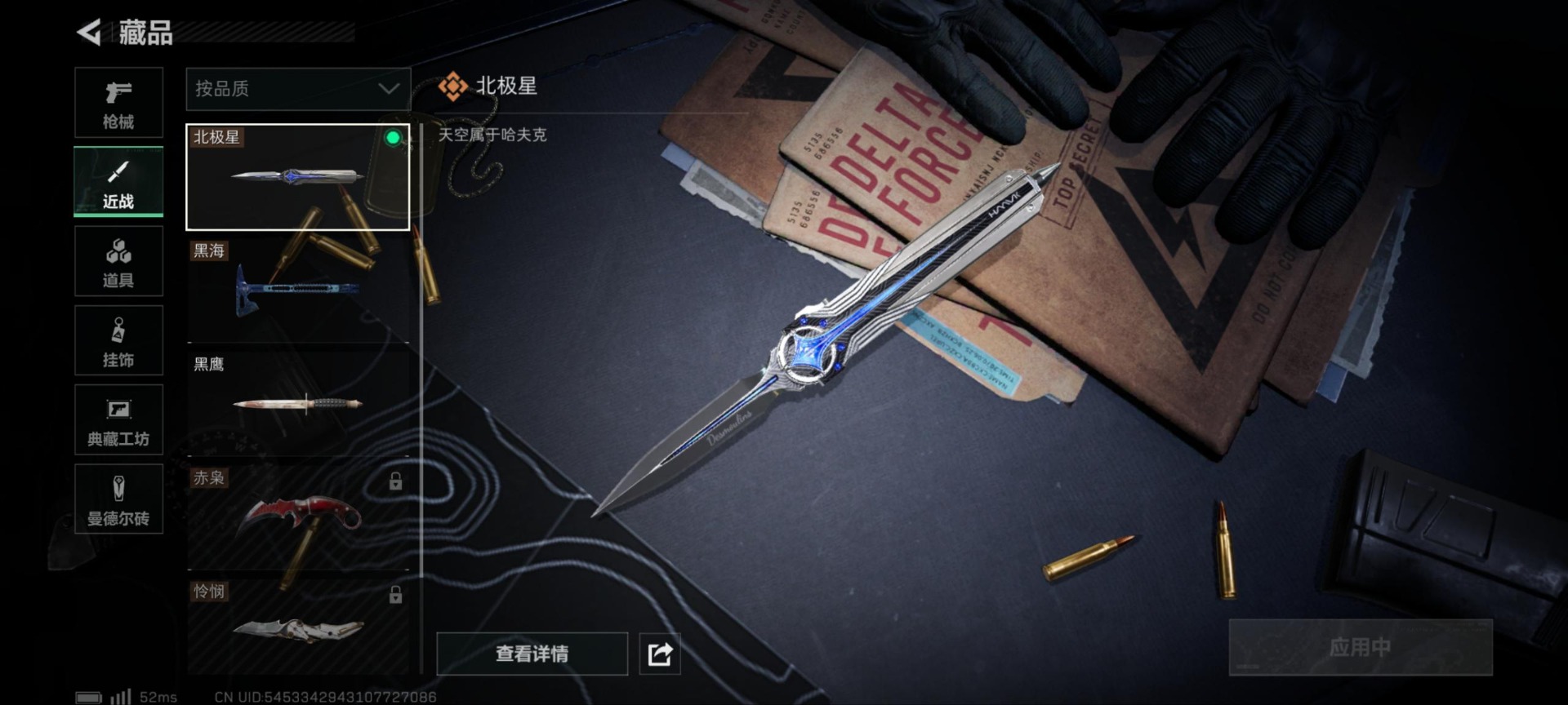 [11498861]总资产:50.3M 1干员外观 2近战传说 19传说枪械 哈夫币:536.826K 高级安全箱(9.17到期) 可二次 可修改实名 优质装备:近战-黑海,近战-北极星 烽火地带段位:三角洲巅峰 全面战场段位:上等兵 传说武器皮肤:SMG45冲锋枪-骑士,UZI冲锋枪-特斯拉线圈,AWM狙击步枪-捞点薯条,腾龙突击步枪-捞点薯条,93R-捞点薯条,AK-12突击步枪-特斯拉线圈,SR-3M紧凑突击步枪-特斯拉线圈,勇士冲锋枪-能天使-午夜邮差,复合弓-黑-天际线,K437突击步枪-北极星,QCQ171冲锋枪-北极星,725双管霰弹枪-送葬人-无题密令,M4A1突击步枪-阿米娅,CAR-15突击步枪-阿米娅,AK-12突击步枪-夜鹰,MP5冲锋枪-黑海,QJB201轻机枪-黑海 史诗武器皮肤:M700狙击步枪-蝮蛇,PKM通用机枪-蝮蛇,M16A4突击步枪-竞赛选手,PKM通用机枪-守夜人,AS Val突击步枪-尖端治疗,M700狙击步枪-守夜人,SG552突击步枪-尖端治疗,SR-25射手步枪-尖端治疗,M1014霰弹枪-林中猎手,SG552突击步枪-深海恐惧,AKM突击步枪-林中猎手,SVD狙击步枪-暗夜猎手,PTR-32突击步枪-英雄,PKM通用机枪-荒野求生,SV-98狙击步枪-囚徒,腾龙突击步枪-无垢,MP7冲锋枪-无垢,SVD狙击步枪-荒野求生,SR-3M紧凑突击步枪-荒野求生,M14射手步枪-黑鹰坠落,沙漠之鹰-曙光,Vector冲锋枪-阿萨拉文明,M700狙击步枪-竞技风 干员外观:无名-夜鹰