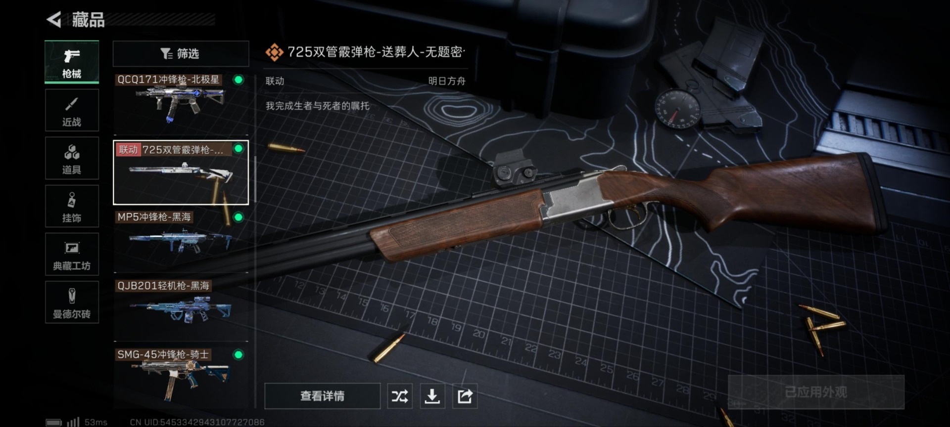 - PX_2090899- 安卓手Q-11王牌印记-2粉装-1特效枪-1载具-33503热力值-83套装-116枪皮-0卓越印记-0传奇印记 【2粉装】,伏羲圣卦,萨利娅 【1特效枪】Kar98K-巳巳如意-5级 【2稀有紫装】,Mark.06,龟仙人, 【1稀有载具】,合金龙骨(蓝), 【83稀有时装】,SS31特训,SS34特训,朱霞炽焰,绛羽幽主,龟仙人,Mark.06,蜜露汐语,龙魂突击队,