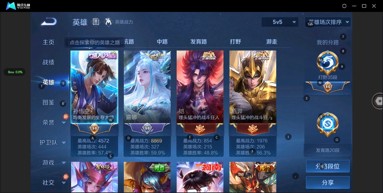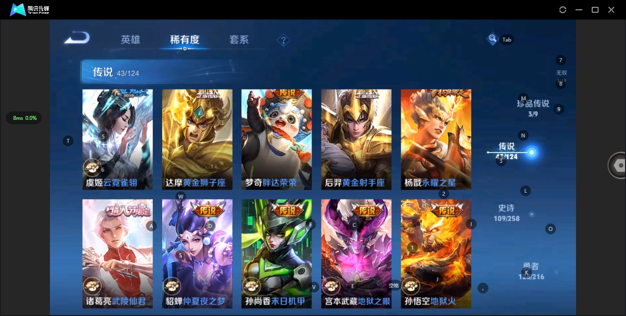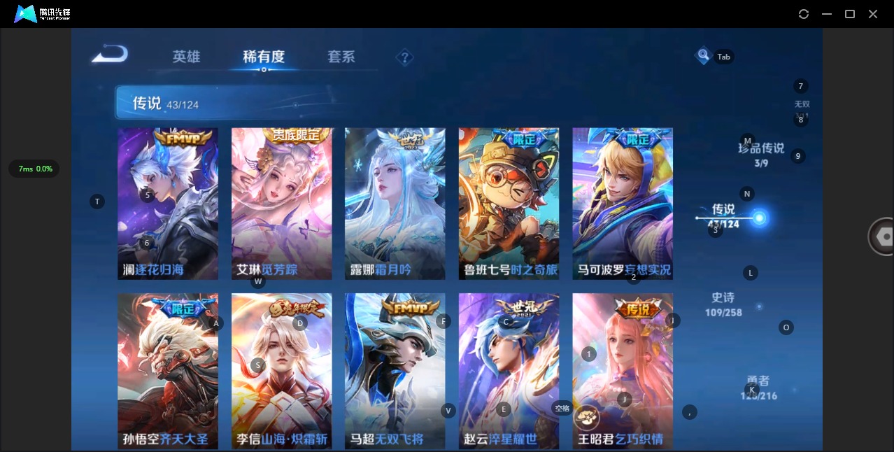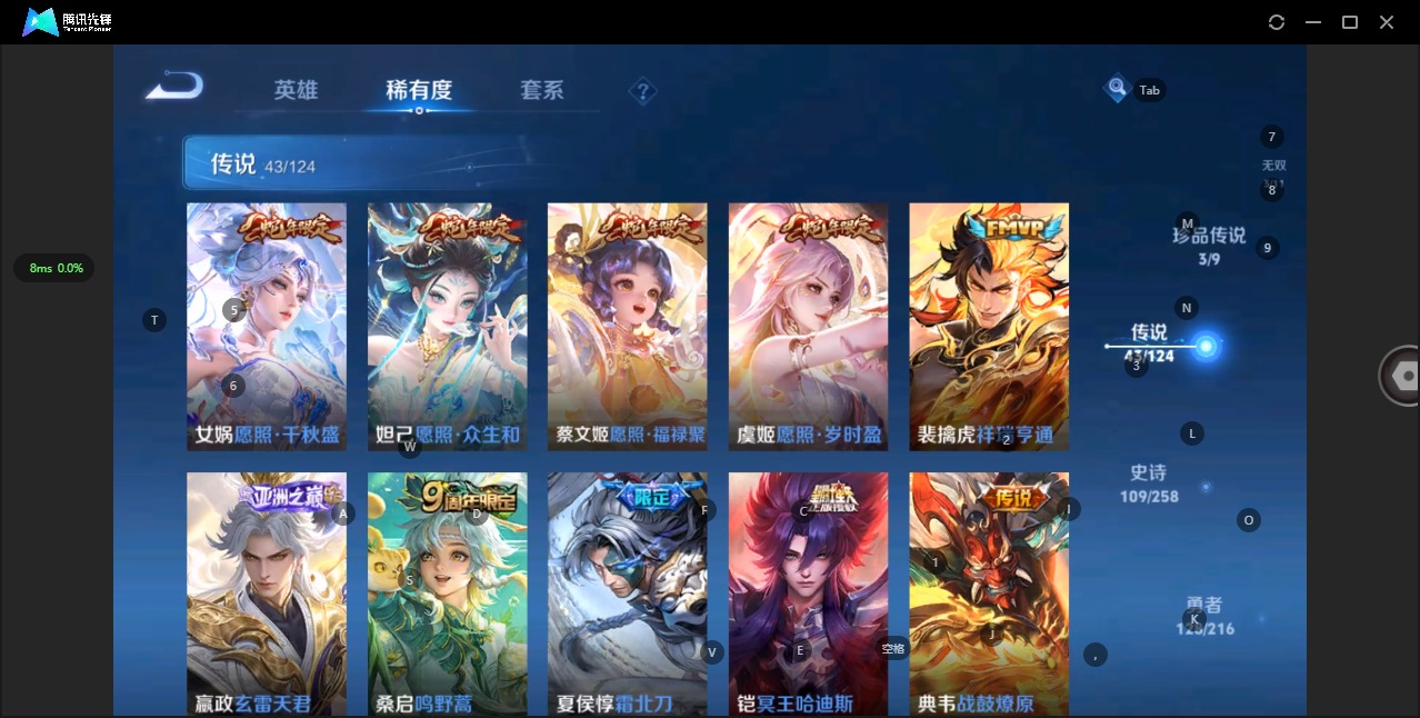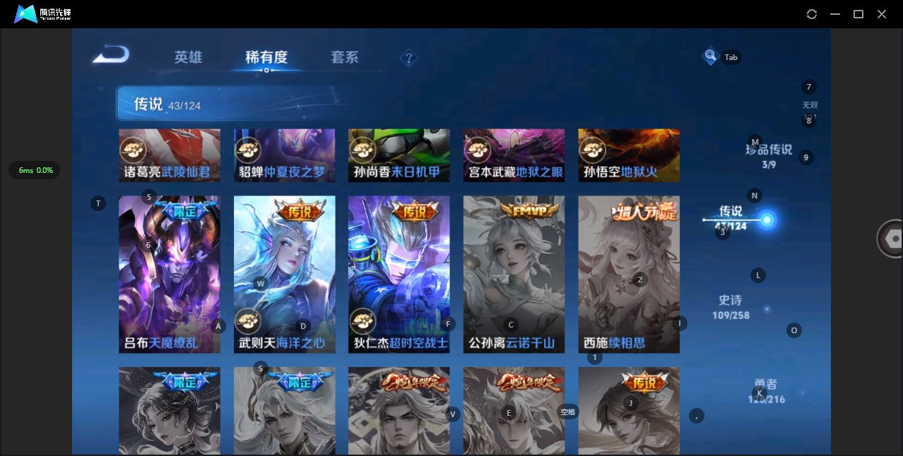 - [11739424]V4 2传说 124英雄 170皮肤 可修改实名 传说皮:幻光神枪 珍宝阁皮:女武神,玩趣恶龙 限定皮:鸣野蒿,高山流水,五谷丰年,天狼溯光者 史诗皮:化蝶舞,龙之律动,百相守梦-黄忠,织梦人,千年之狐,江河有灵,电玩·爆裂旋风,末日机甲-吕布,女仆咖啡,水果甜心,星夜王子,功夫厨神,暗隐猎兽者,幽灵船长,鬼剑武藏,舞动绿茵,地狱岩魂,乘风破浪,水晶猎龙者,金属风暴,圣诞狂欢,圣诞恋歌,鹰眼统帅,魅力维加斯,无心,未来纪元-赵云