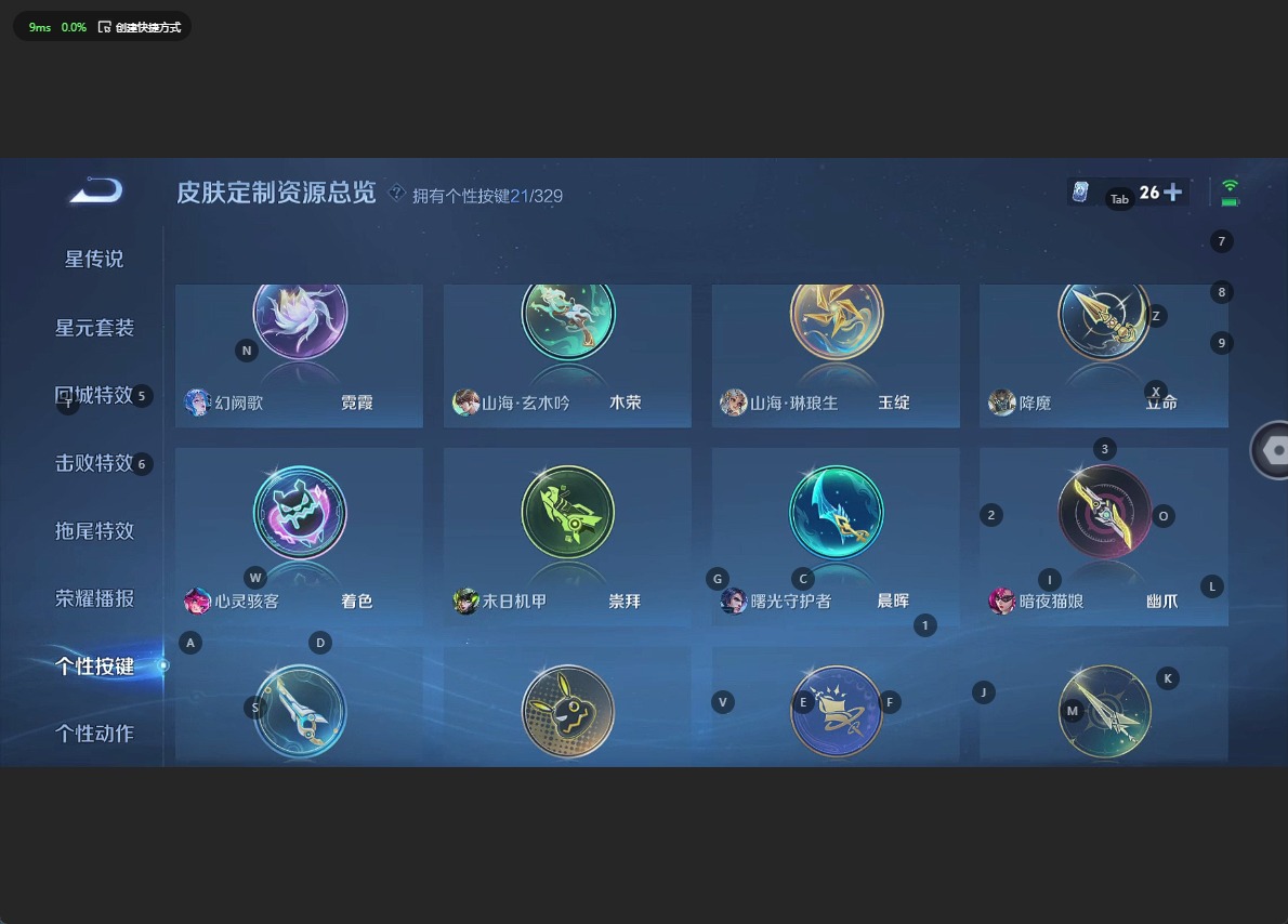 露娜启示之音,后羿辉光之辰,兰陵王默契交锋,兰陵王影龙天霄,貂蝉逐梦之音,裴擒虎李小龙,上官婉儿梁祝,马可波罗山海·玄木吟,桑启鸣野蒿,孙悟空至尊宝,韩信逐梦之影,墨子降魔,虞姬霸王别姬,关羽冰锋战神