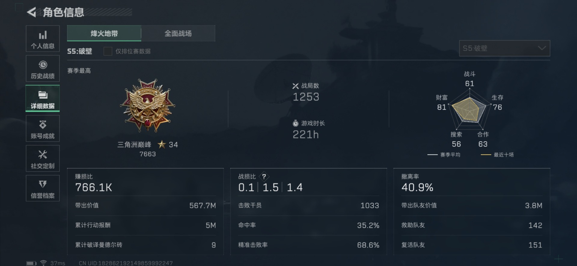 - [11682149]总资产:104.7M 哈夫币:27.966K 可二次 可修改实名 烽火地带段位:无段位 全面战场段位:无段位