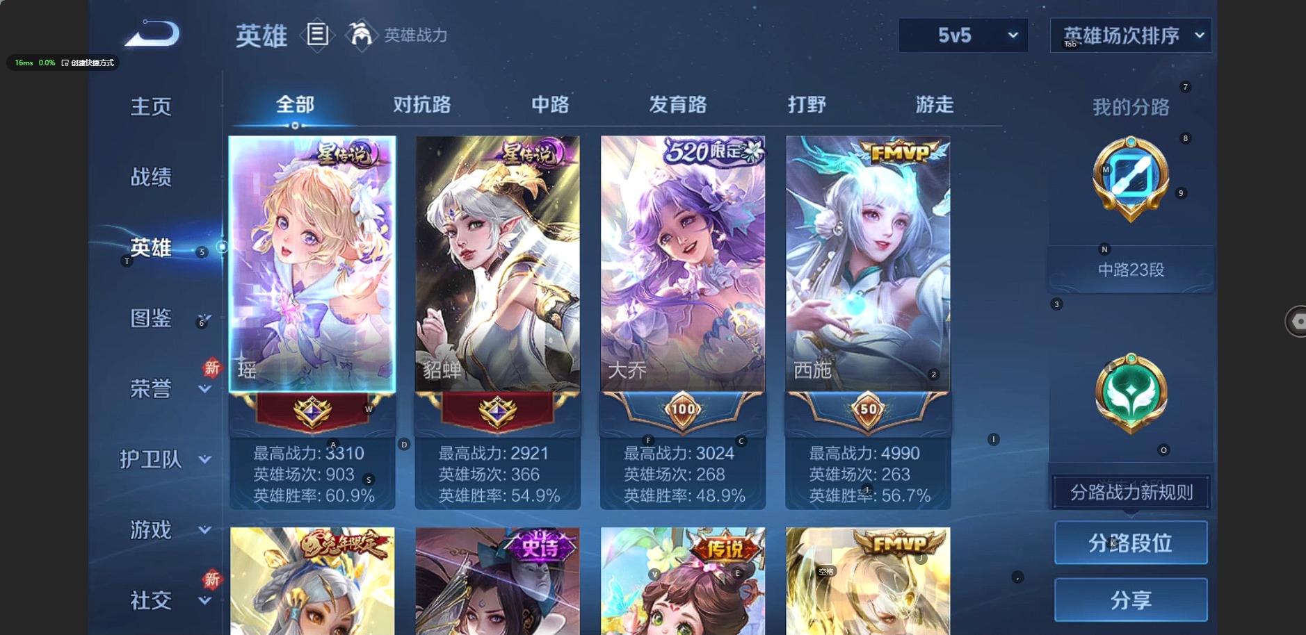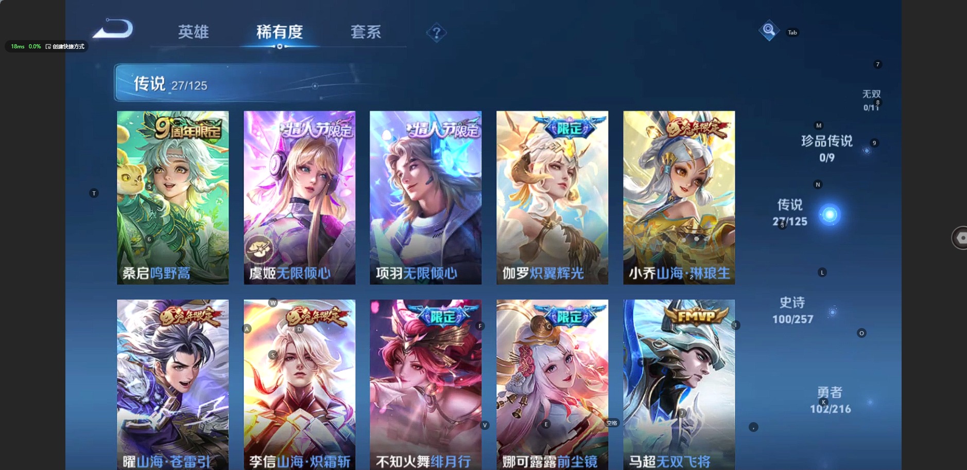 - [11898604]V5 4传说 124英雄 180皮肤 可修改实名 传说皮:幻光神枪 珍宝阁皮:优雅恋人,蔷薇恋人 限定皮:愿照·岁时盈(虞姬年限),逐霄战戟,鸣野蒿,夏侯惇霜北刀,至尊宝,高山流水,梁祝,李小龙 史诗皮:器灵·浮梦炉,星界战将,谪仙醉月,蒙犽顽岩魄,蔬乡物语(鲁班七号),紫霞仙子,电玩小子(小书包),黄金分割率,千年之狐,永昼,魅语,高渐离燃音魔法,蒙恬荣光圣徽,冰冠公主,偶像歌手,电玩·爆裂旋风,暗夜猫娘,龙骑士(小龙虾),猫狗日记-孙策,乱世虎臣,节奏热浪,女仆咖啡,摇滚巨星,水果甜心,绅士熊喵,天才门将,功夫厨神,德古拉伯爵,暗隐猎兽者,鬼剑武藏,心灵战警,拒霜思,乘风破浪,水晶猎龙者,箭羽风息,金属风暴,圣诞狂欢,鹰眼统帅