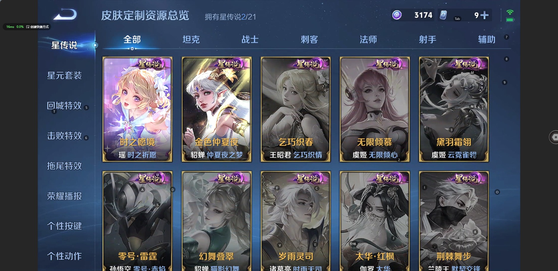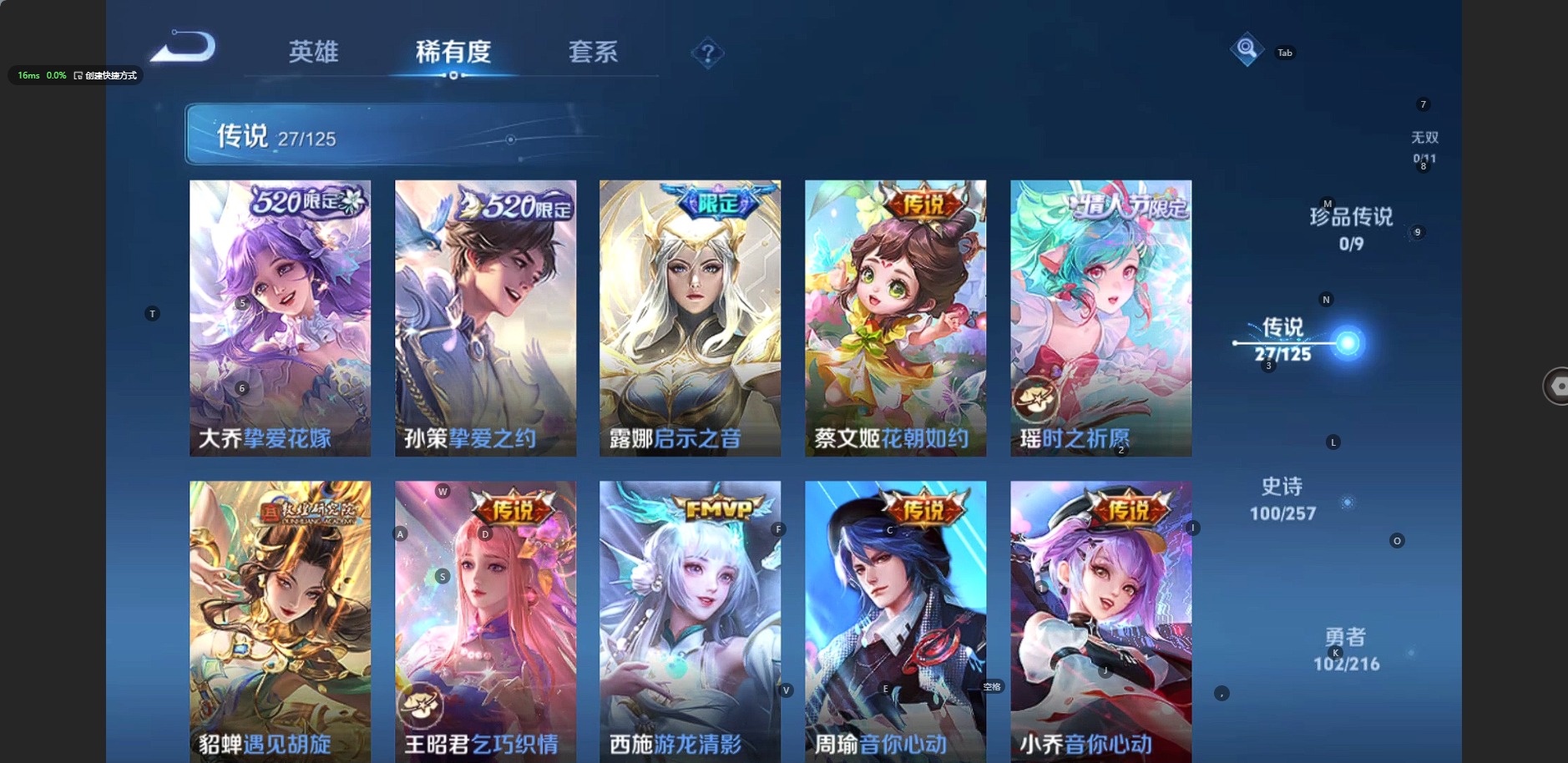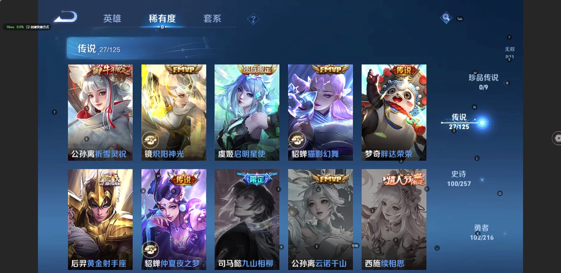 - [11688170]V7 1典藏 9传说 125英雄 235皮肤 可修改实名 优质装备:神鉴启示录,冠军飞将,炽阳神光,音你心动-小乔,胖达荣荣,大乔-时之奇旅 珍宝阁皮:蔷薇恋人,女武神 限定皮:凤凰于飞,星穹之声,白鹤梁神女,山海·碧波行(瑶年限),遇见飞天,诗剑行,无限倾心-虞姬,五谷丰年,梁祝,孙行者,乒乒小将,女儿国国王,时之祈愿-瑶(瑶传限),匿光启智者,时之奇旅-妲己,山海·玄木吟(马可年限) 史诗皮:化蝶舞,琥珀纪元伽罗,遇见神鹿,紫霞仙子,苍穹之光,黄金分割率,江河有灵,匿光侦查者,雪夜绮愿(周瑜),百解令(蒙犽),高渐离燃音魔法,蒙恬荣光圣徽,无限星赏官,匿光破解者,青蛇,晚萤,电玩·爆裂旋风,猫狗日记-孙策,时之恋人-孙尚香,乱世虎臣,女仆咖啡,水果甜心,天才门将,时之奇旅-安琪拉,功夫厨神,暗隐猎兽者,幽灵船长,鬼剑武藏,地狱岩魂,纤云弄巧,繁星吟游(呼啦呼啦),拒霜思,逐浪之夏,水晶猎龙者,曙光守护者,箭羽风息,金属风暴,圣诞狂欢,圣诞恋歌,鹰眼统帅,暗夜贵公子,魅力维加斯,奇遇舞章,天秀·音浪,无心