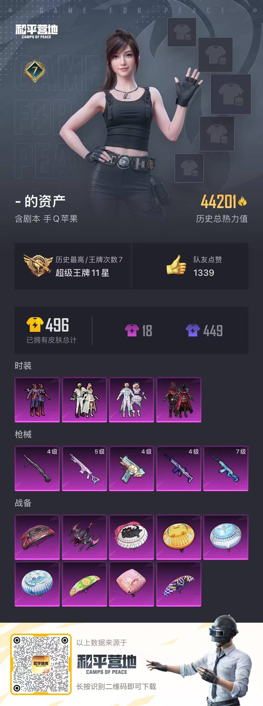 - PX_2077578- 安卓手Q-7王牌印记-1粉装-1特效枪-1载具-49670热力值-146套装-174枪皮-1卓越印记-0传奇印记 【1粉装】,星穹咏叹调 【1特效枪】Kar98K-巳巳如意-5级 【2稀有紫装】,暗影哥特,龟仙人, 【1稀有载具】,兰博基尼Estoque(银翼灰), 【146稀有时装】,SS31特训,SS33特训,SS32特训,蓝冰羽,极速光影,雪绒豹,紫幽梦,大橘大利,