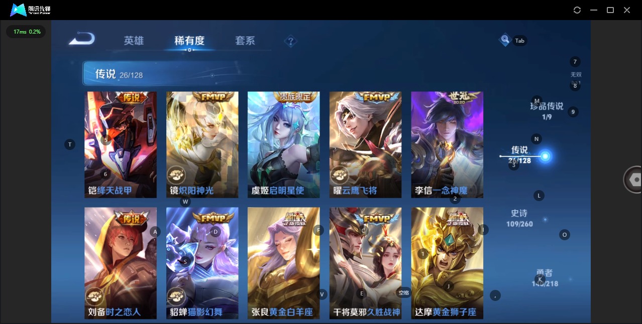 - PX_2104999-苹果q-贵族积分68409-V8-185皮肤-1典藏 1珍品 4无双 19传说 -(可二次) 打野18段 发育路11段 1星元 26002紫星币 1珍品 器灵落星盏 4无双 器灵螭龙剑 雪境奇遇 时之魔女 真我赫兹瑶 -1典藏(已兑换) 幻阙歌 凤求凰 神威 星之鸣奏 续相思 幻光神枪 祥瑞亨通 愿照岁时盈 愿照千秋盛 愿照众生和 愿照九州拓 愿照山河定 愿照福禄聚 至尊