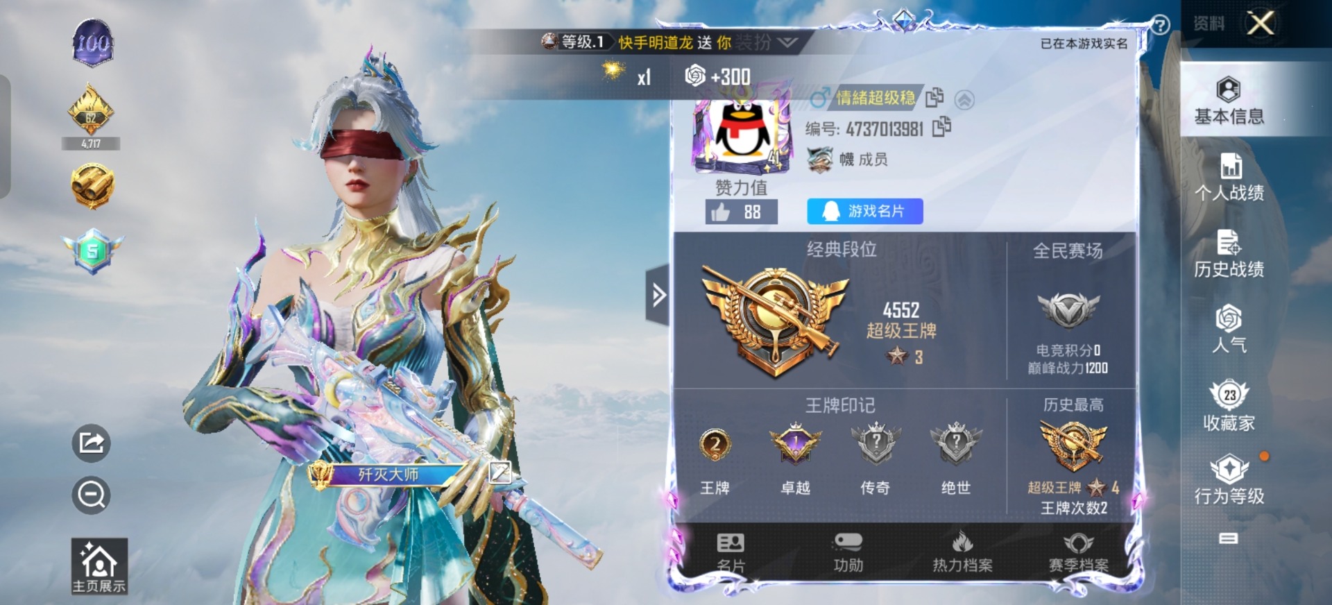 - [11525626]V10 3典藏 1珍品无双 4无双 1珍品传说 46传说 125英雄 492皮肤 可修改实名 优质装备:馥梦繁花,全息碎影(猴子典藏),弑枪猎影(韩信典藏),神器·明辉仪,青丘·九尾(妲己无双),碎月剑心(李白无双),花合斗,最初的交响(伽罗典藏),酷洛米之心,黄金狮子座,黄金射手座,冠军飞将,云鹰飞将(小将军),绛天战甲(鸡嘴战神),黄金白羊座,猫影幻舞,久胜战神,炽阳神光,一念神魔,云霓雀翎,末日机甲-孙尚香(绿蚂蚱),地狱火,仲夏夜之梦(大飞蛾),音你心动-小乔,零号·赤焰,地狱之眼,音你心动-周瑜,李逍遥,乞巧织情,时之恋人-刘备(电焊工),游龙清影(小青龙),淬星耀世,超时空战士-狄仁杰,花朝如约(花篮子),音你闪耀(rap皮),神器·狴犴令,神器·明辉仪,青丘·九尾,电玩·雷克斯,艾琳觅芳踪,黄金天蝎座 传说皮:铠冥王哈迪斯,幻光神枪 珍宝阁皮:妄想食味,胡桃夹子,玩趣恶龙 限定皮:逐霄战戟,鸣野蒿,至尊宝,凤求凰(白切鸡),凤凰于飞,太华(伽罗年限),武陵仙君(小桃花),异界灵契(白毛香),星穹之声,绯月行,白鹤梁神女,魔法小厨娘,白晶晶,时雨天司(水龙头),神威(电光马子),飞衡(韩信年限),瑞麟志(木兰年限),高山流水,齐天大圣,匿光决锋者,五谷丰年,青龙志(铠年限),冰锋战神,武圣,天狼运算者,梁祝,御风骁将(吕布年限),岱宗(典韦年限),天狼溯光者,虎魄,天狼征服者,奔雷神使(牛魔年限),天狼绘梦者,李小龙,逐梦之影,玄武志(苏烈年限),朱雀志(守约年限),辉光之辰,如梦令-后羿,霸王别姬-项羽,霸王别姬-虞姬,奇迹圣诞,孙行者,猪悟能,大圣娶亲,引擎之心,天魔缭乱,乒乒小将,神奇女侠,无尽星芒,深海之息(深海大菠萝),唐三藏,时之奇旅-妲己,神器·万象笔,梦圆繁星 史诗皮:鸭鸭历险记-刘禅,化蝶舞,星界战将,灵蛊蚀心,龙之律动,小牛鸭,石田雨龙,茶境仙,破空之剑,东方月初,蒙犽顽岩魄,埋骨钱,芈月浮光幕影,怒海争锋,谪仙醉月,决胜骁骑,蔬乡物语(鲁班七号),琥珀纪元伽罗,百相守梦-百里守约,遇见神鹿,紫霞仙子,苍穹之光,电玩小子(小书包),白龙吟,黄金分割率,特工魅影,千年之狐,电玩·兔顽号,匿光破解者,百相守梦(刘备),百相守梦(关羽),电玩·爆裂旋风,浮梦罗烟,匿光侦查者,江河有灵,百解令(蒙犽),高渐离燃音魔法,银翎春语,偶像歌手