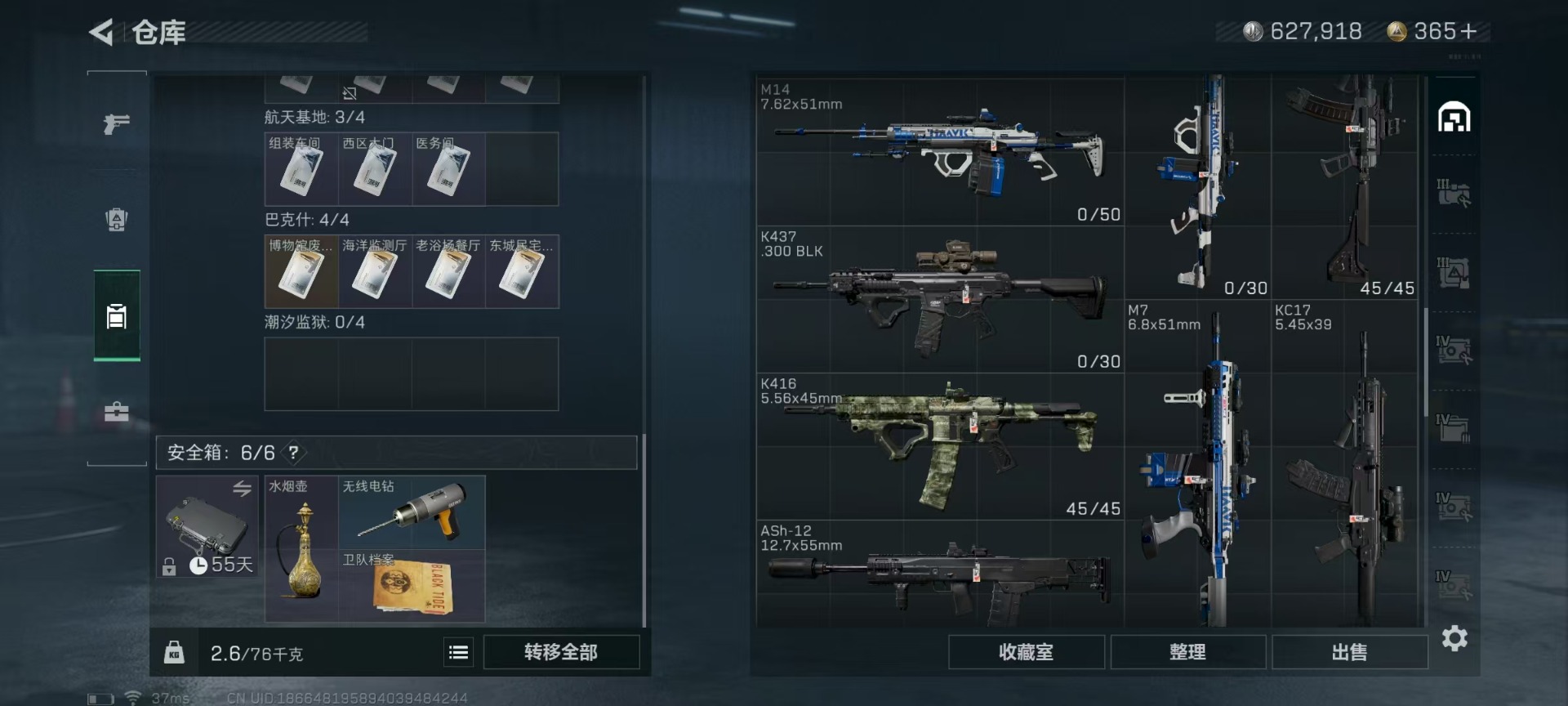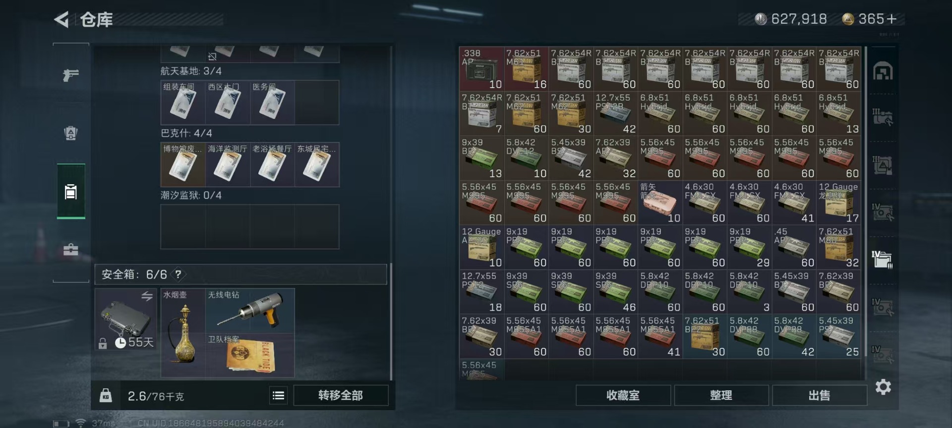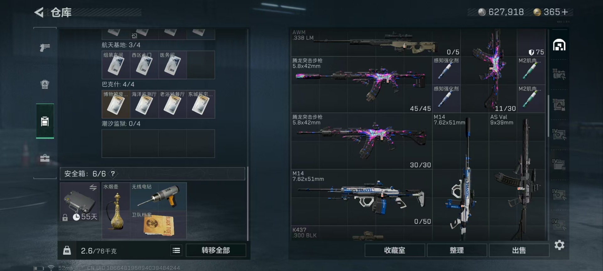 [11514901]可二次 可修改实名 实名:可修改 高级安全箱(9.17到期) 总资产:136.4 哈夫币:627.918 传说武器皮肤:复合弓-黑-天际线,CAR-15突击步枪-阿米娅,725双管霰弹枪-送葬人-无题密令,M4A1突击步枪-阿瑞斯之怒 史诗武器皮肤:SKS射手步枪-ACE,M700狙击步枪-蝮蛇,PKM通用机枪-蝮蛇,PKM通用机枪-荒野求生,SR-3M紧凑突击步枪-荒野求生,AKM突击步枪-林中猎手,M1014霰弹枪-林中猎手,SV-98狙击步枪-林中猎手,PTR-32突击步枪-英雄,PSG-1射手步枪-无垢,M250通用机枪-囚徒,SV-98狙击步枪-囚徒